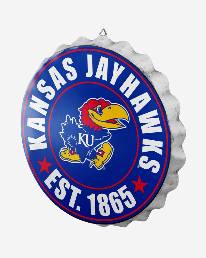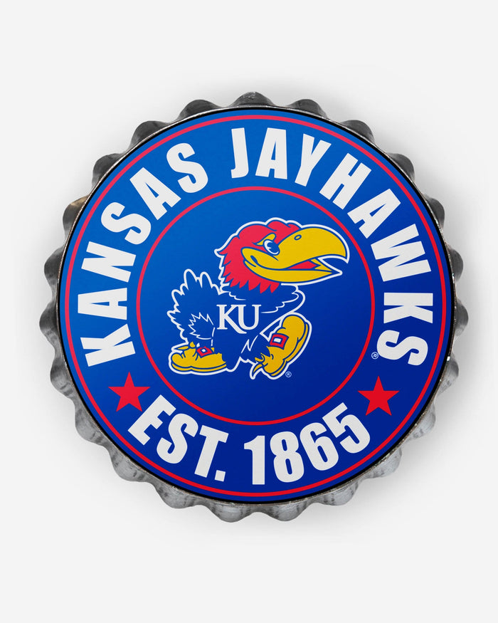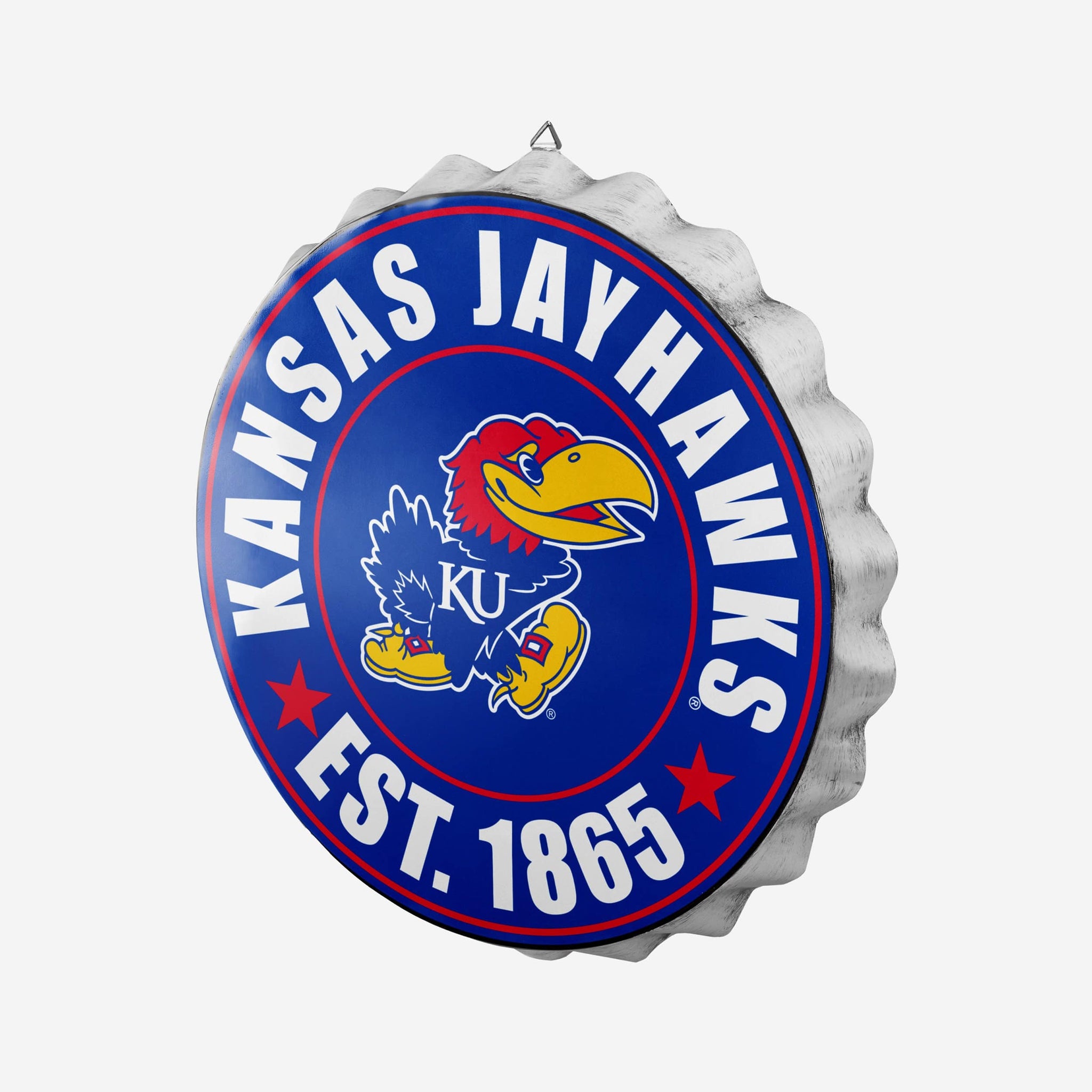 So, which team are you rooting for? That won't be a question you'll hear when you've got this Kansas Jayhawks Bottle Cap Wall Sign on display in your fancave, because the sign will answer it for you.