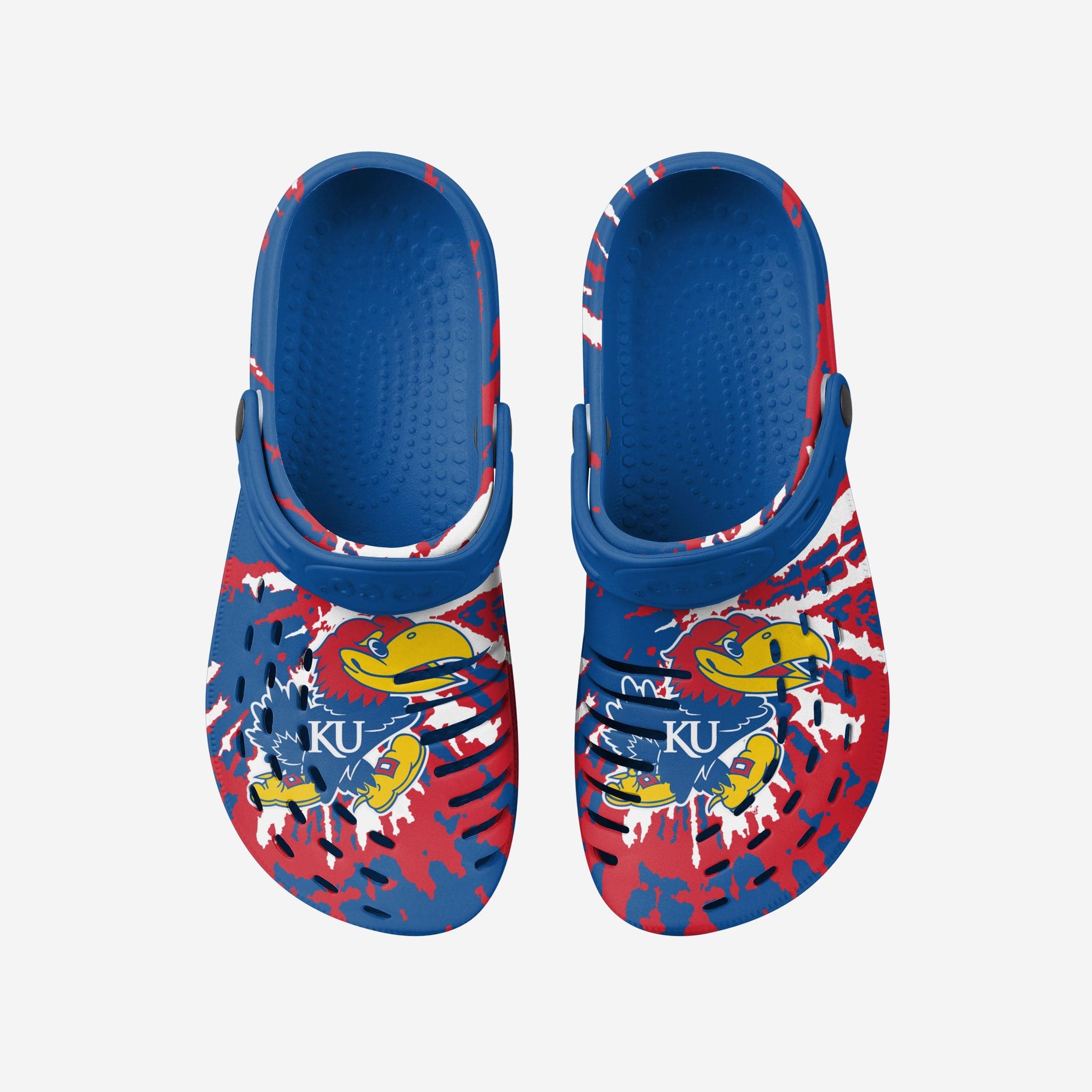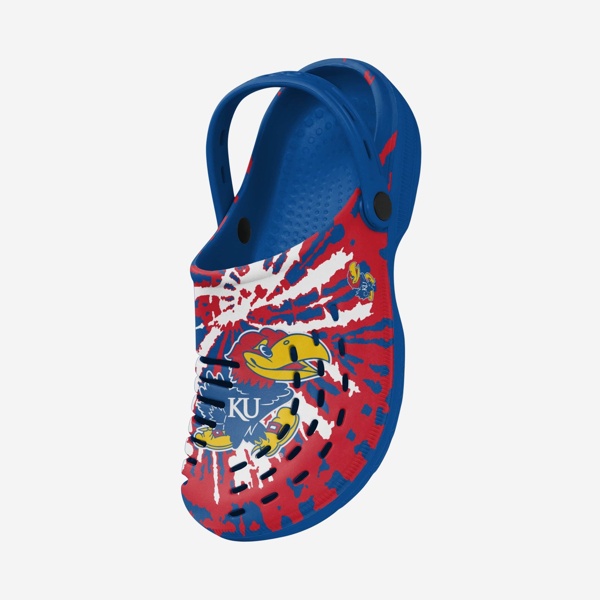 Enjoy a heaping helping of groovy goodness by standing out in these Kansas Jayhawks Tie-Dye Clogs with Straps.