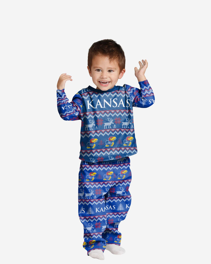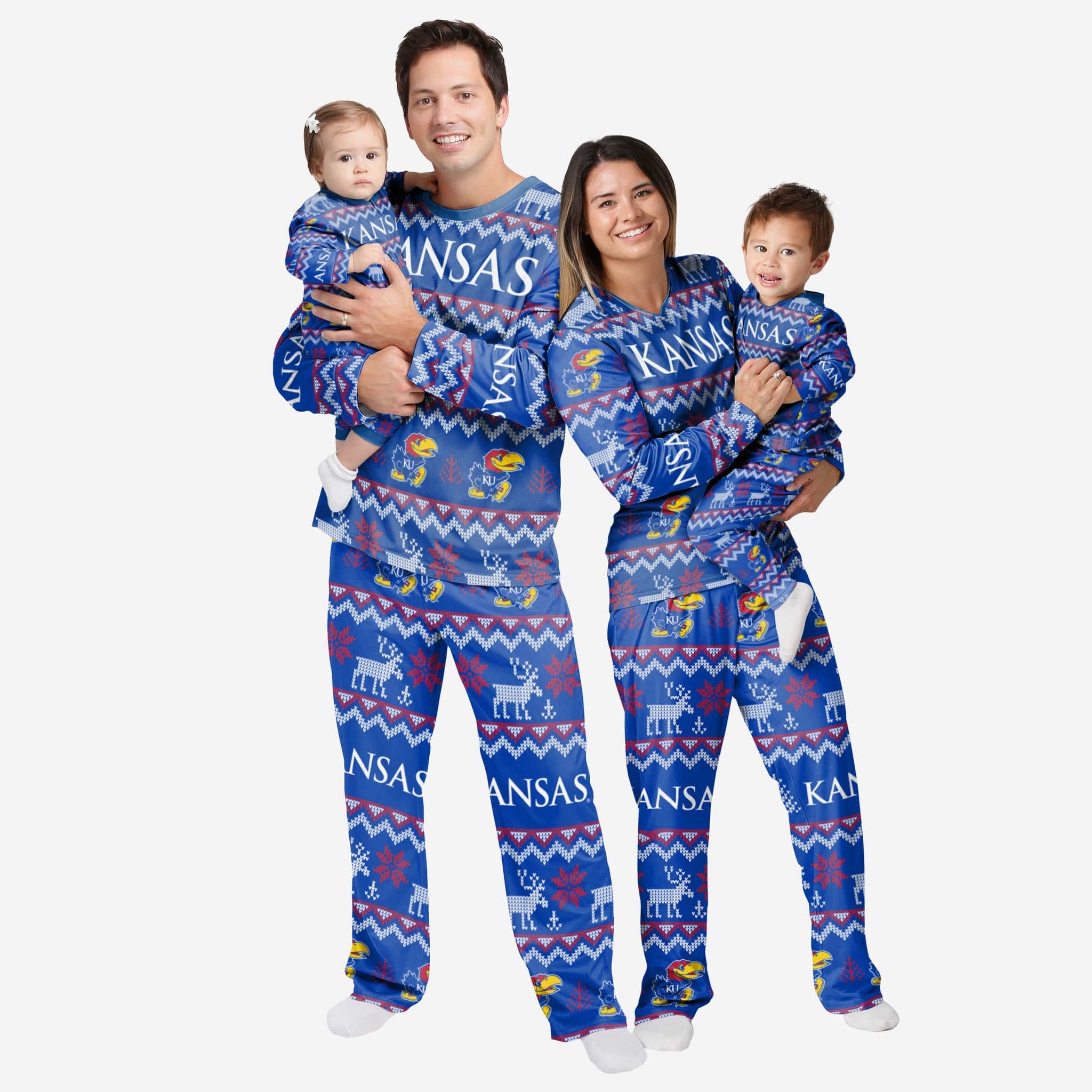 Get some matching family pajamas and dress to impress this holiday season! You won't want to miss these kids' team pajamas! These youth PJ's are comfortable and show off your team spirit in the form of some sweet youth jammies. Introducing the Kansas Jayhawks Toddler Ugly Pattern Family Holiday Pajamas! Don't forget to take your holiday photo with the whole family wearing matching Christmas pajamas!
