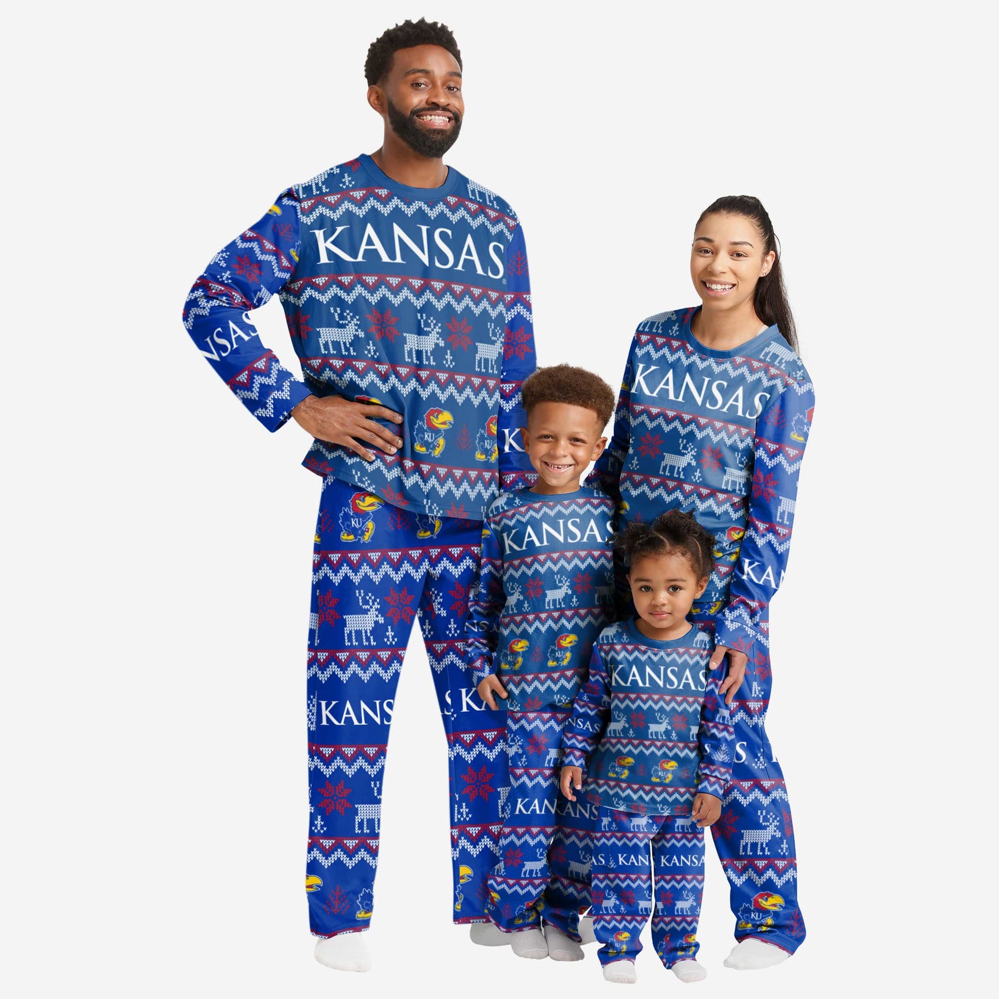 Get some matching family pajamas and dress to impress this holiday season! You won't want to miss these women's team pajamas! These women's PJ's are comfortable and show off your team spirit in the form of some sweet women's jammies. Introducing the Kansas Jayhawks Women's Ugly Pattern Family Holiday Pajamas! Don't forget to take your holiday photo with the whole family wearing matching Christmas pajamas!