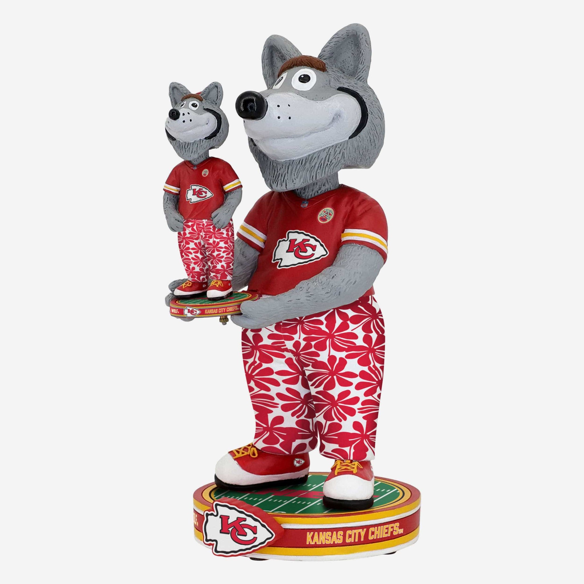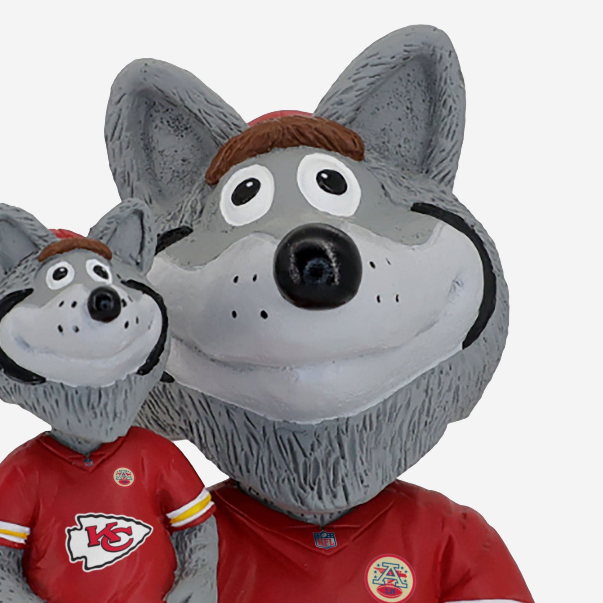 Itĺs a bobble, holding a bobble! Bring twice the excitement to your collection with this KC Wolf Kansas City Chiefs Bobble Dubblz Mascot Bobblehead.