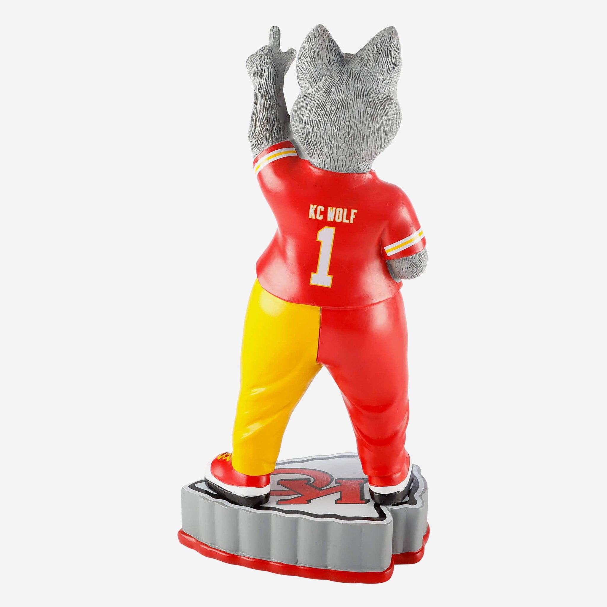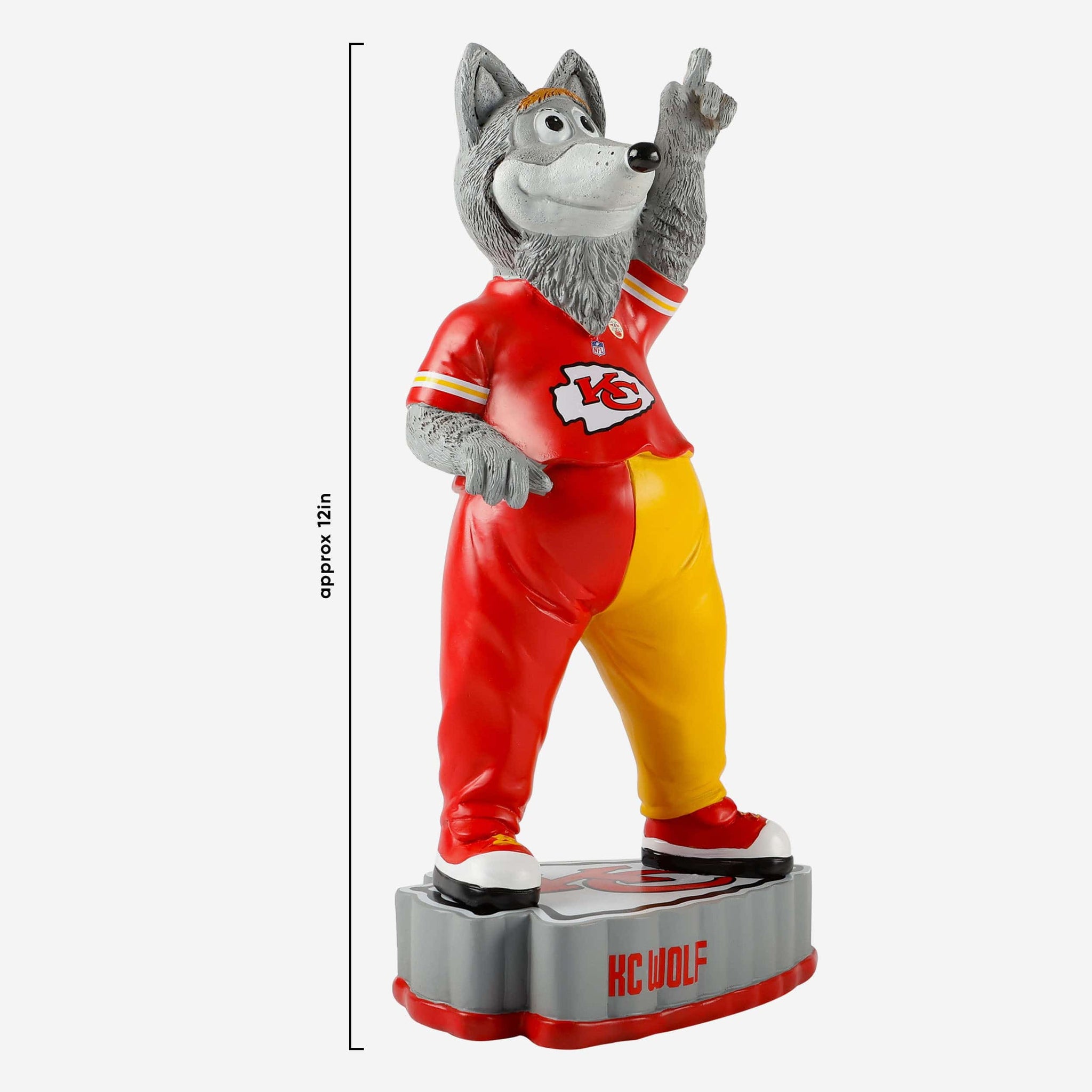 All the fun of gameday in the stands. All the comfort and convenience of your fancave. Say hello to the mascot with the most with this KC Wolf Kansas City Chiefs Mascot Figurine.