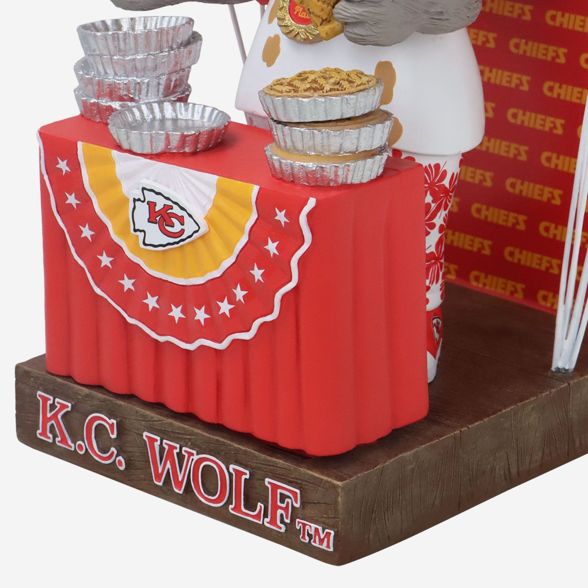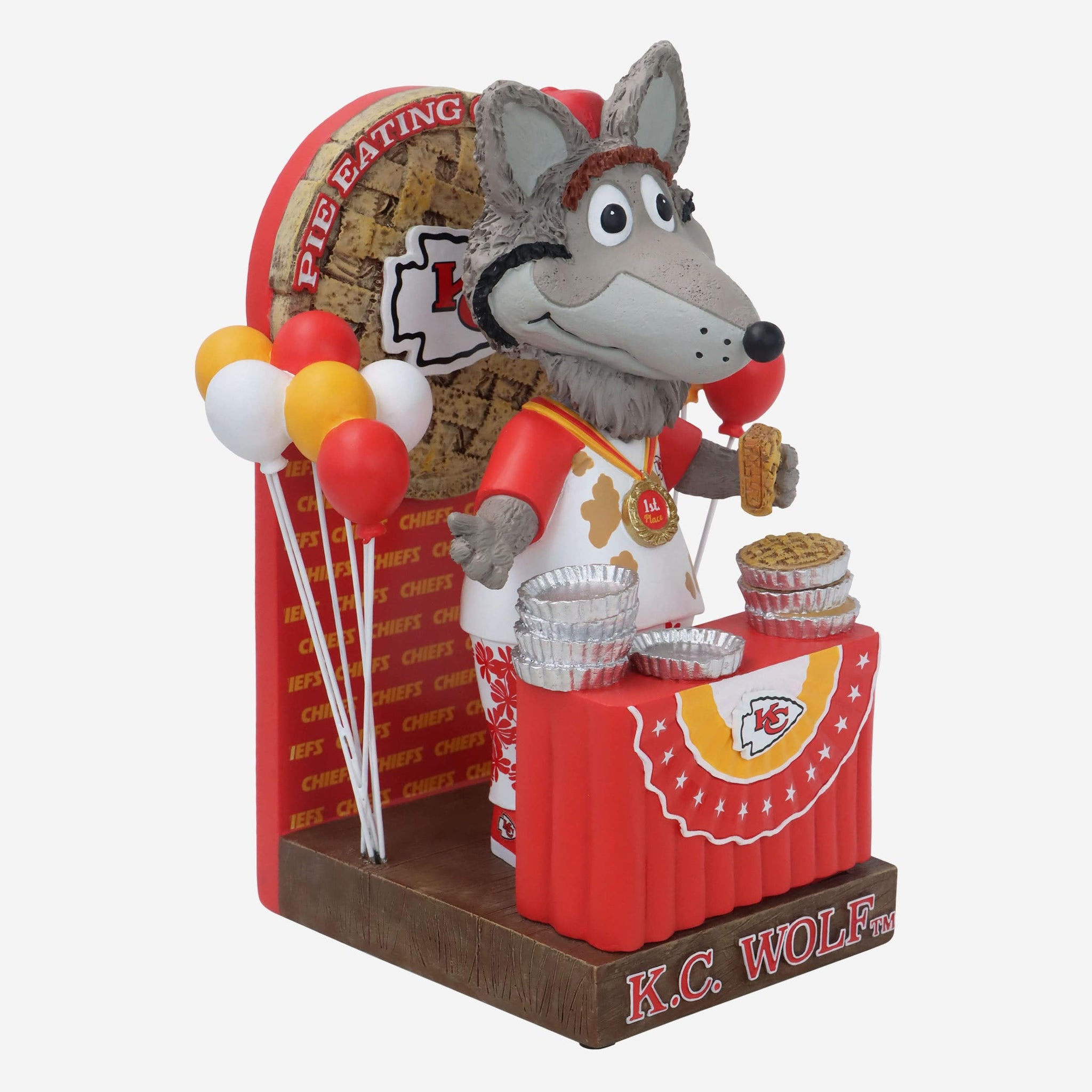 Time to grab a slice! Find your seat at the table with this KC Wolf Kansas City Chiefs Pie Eating Contest Bobblehead.