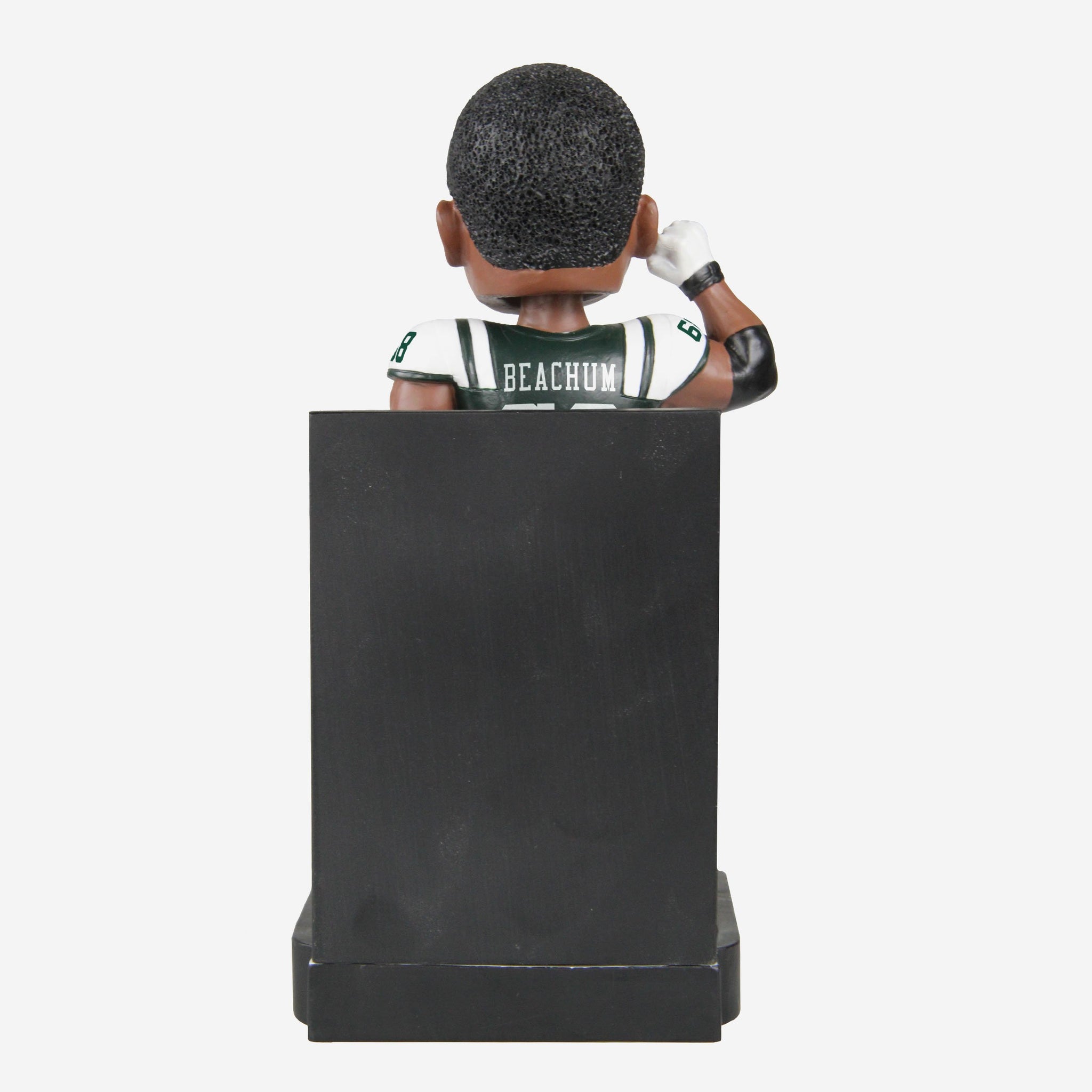 - Portrays Beachum in an action pose in front of a thematic backdrop featuring a comic book-style illustration of him