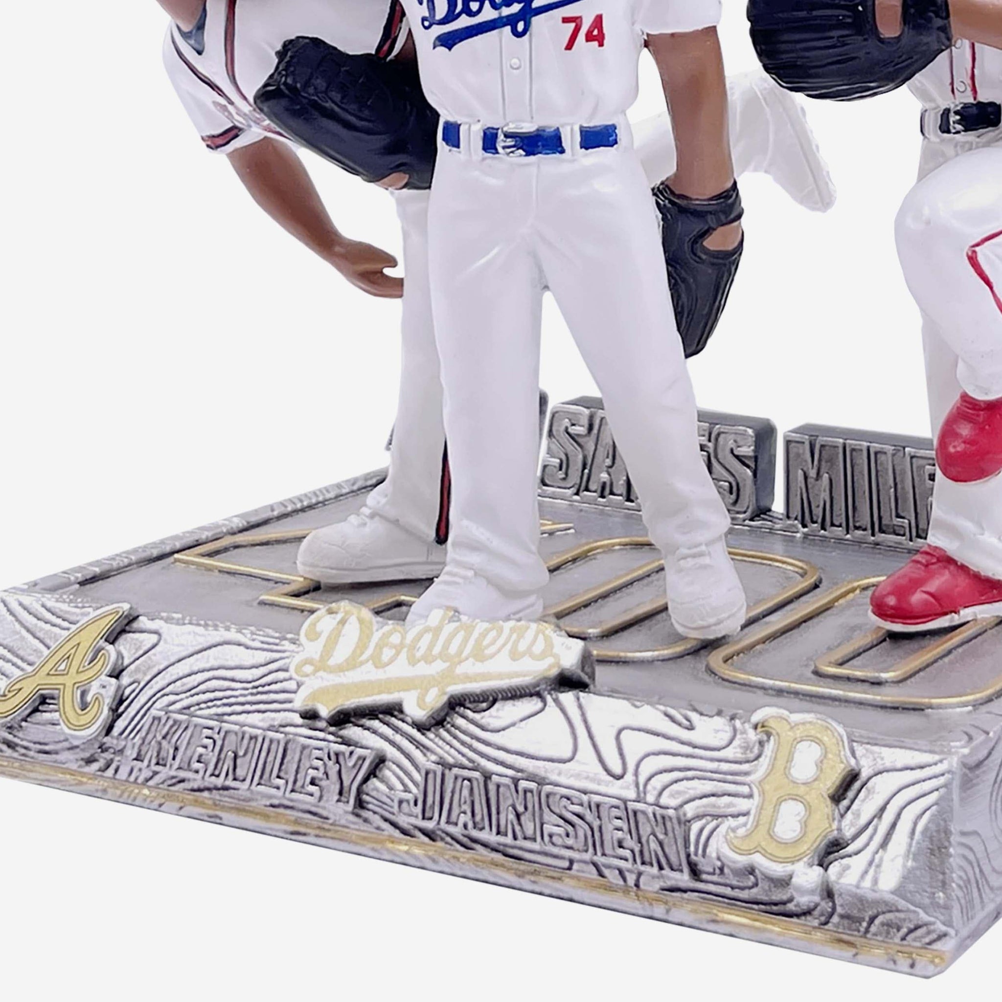 - Portrays three figures of Jansen in his white Los Angeles Dodgers, Atlanta Braves, and Boston Red Sox uniforms to celebrate his career journey that got him to Save No. 400