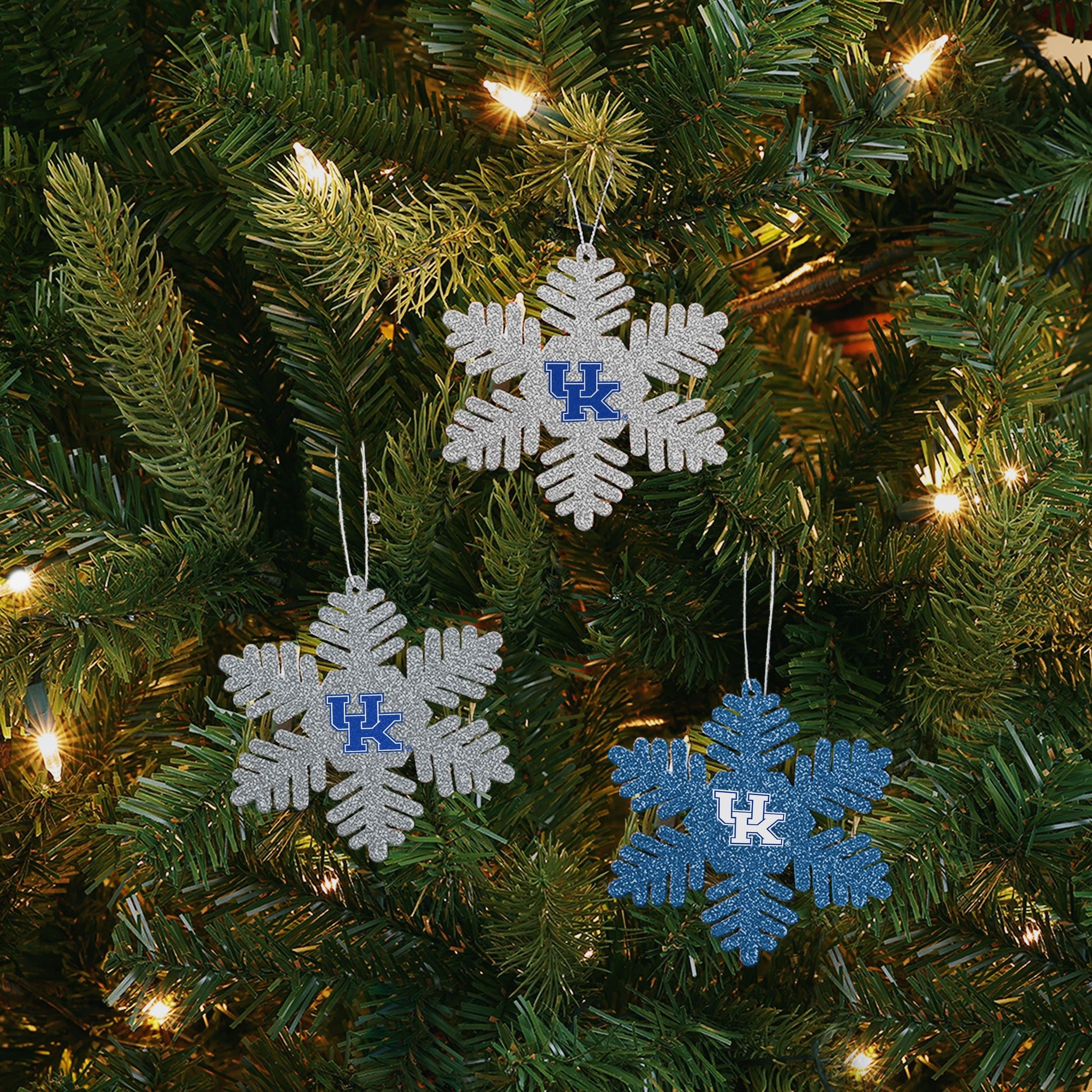 Kentucky Wildcats 3 Pack Metal Glitter Snowflake Ornament FOCO - FOCO.com