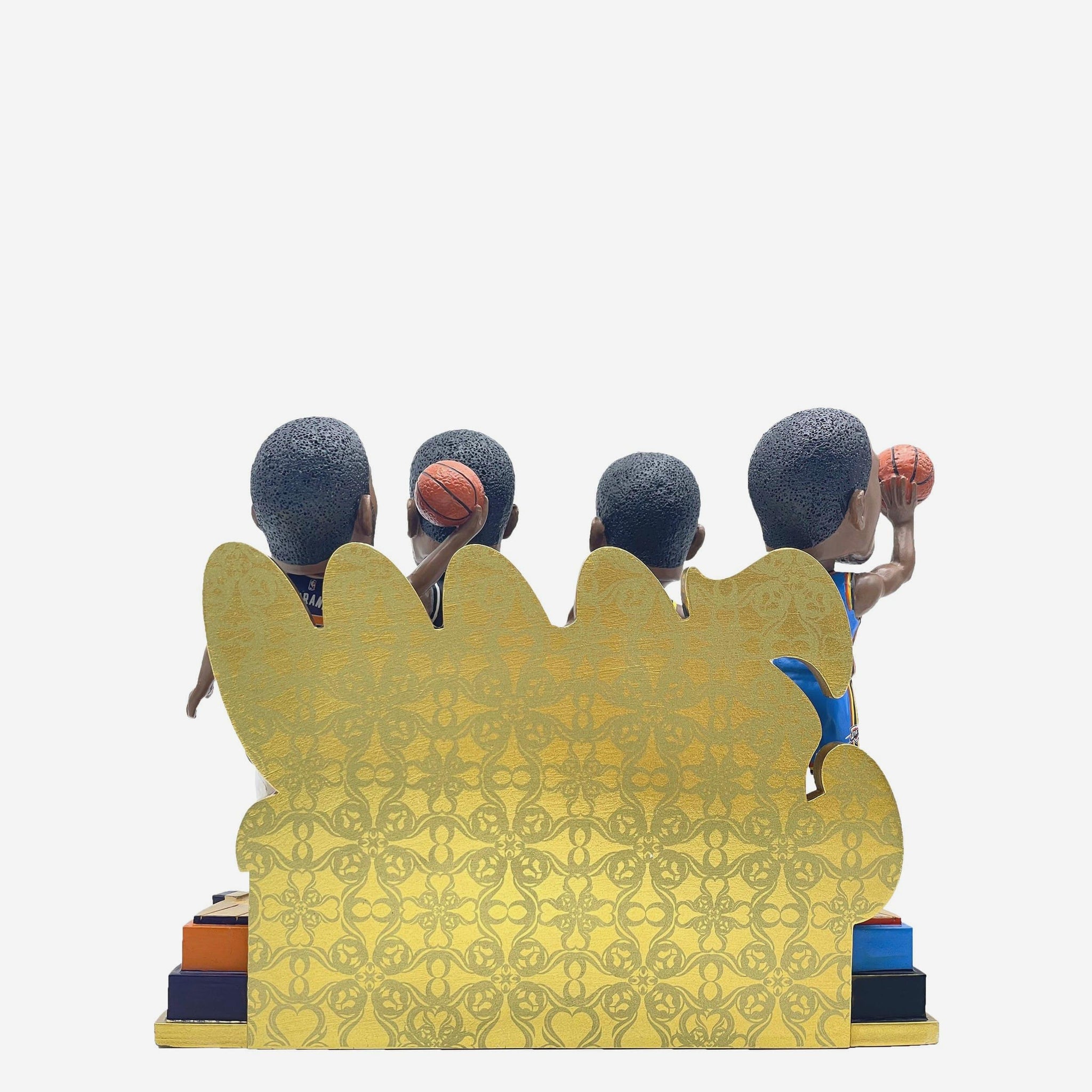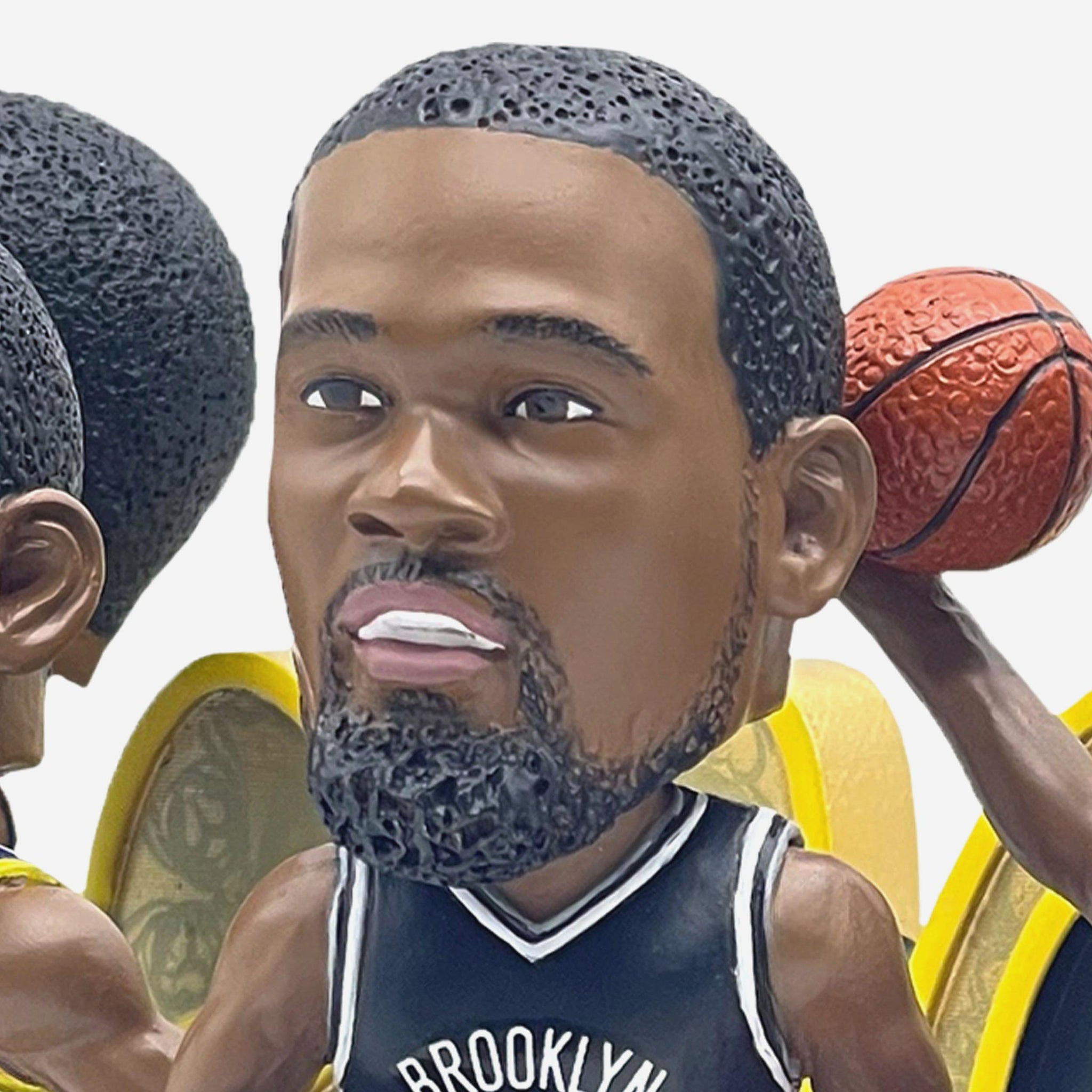 • Portrays Durant wearing his white Thunder, Warriors, Nets, and Suns gameday uniforms in action poses, ready to write his name in the history books