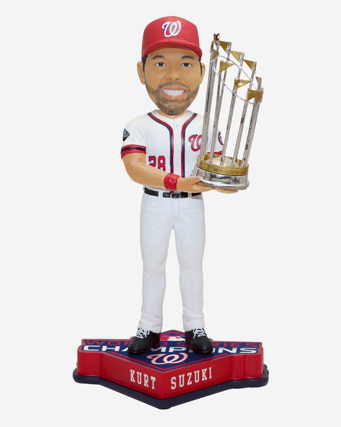 So, you're celebrating a World Series championship. Awesome! But, you didn't get an invite to the team's VIP party. Bummer. That doesn't mean you can't celebrate with your favorite player, though. Just put this Kurt Suzuki Washington Nationals 2019 World Series Champions Bobblehead on your desk and bask in the glory of victory.