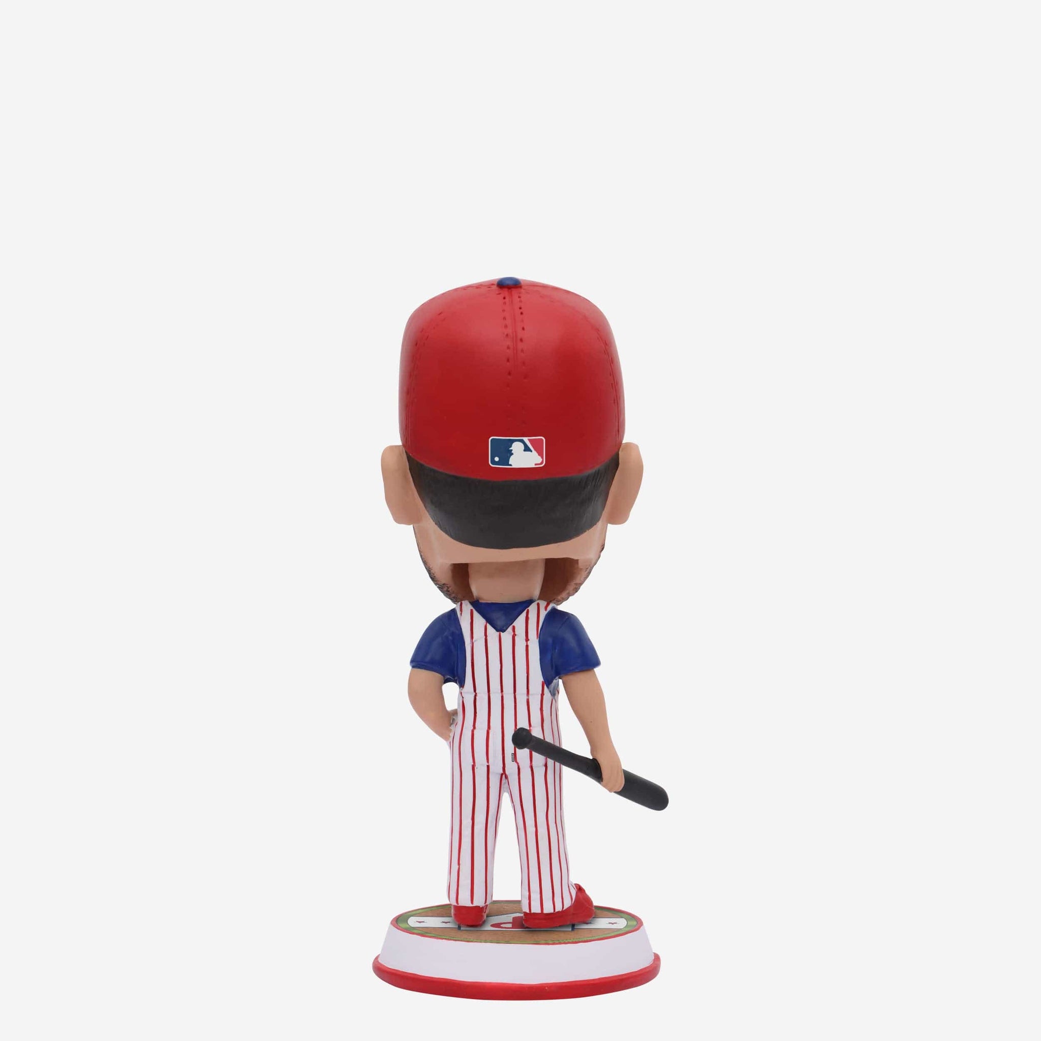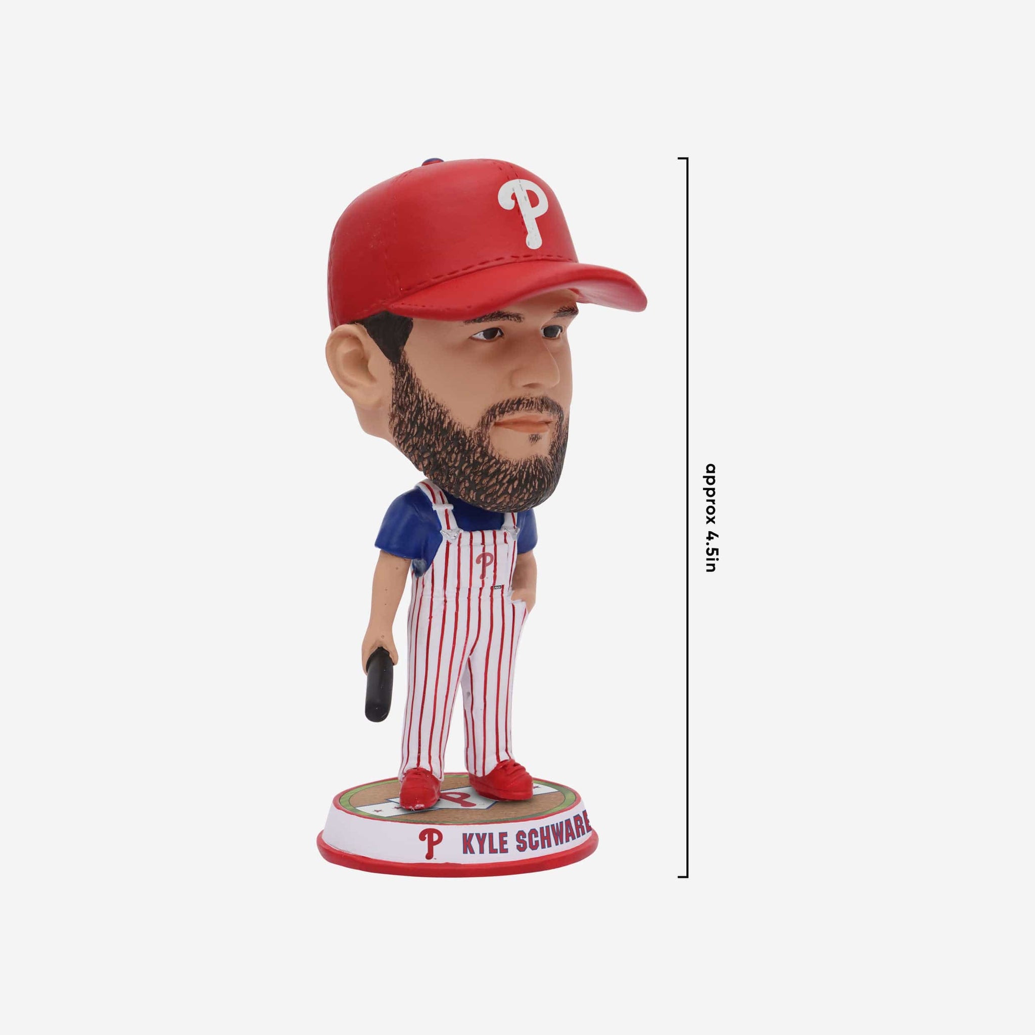 This fan favorite is fashionably flaunting his Phils fit. Assemble your well-dressed dream team with the Kyle Schwarber Philadelphia Phillies Bib Overalls Field Stripe Mini Bighead Bobblehead.