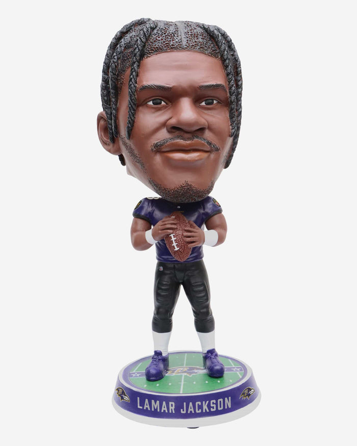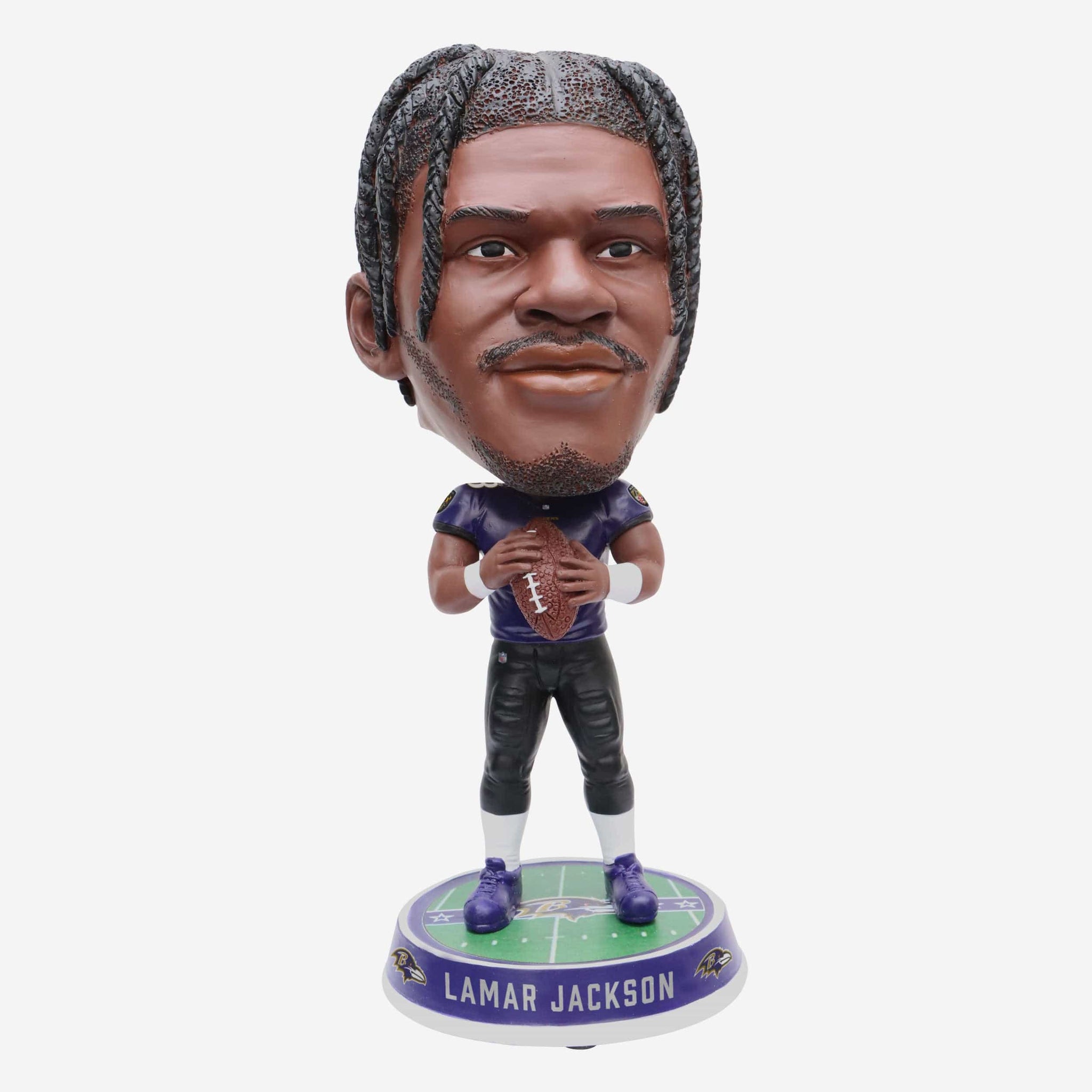 He can run. He can pass. He can bobble. Celebrate a superstar that can do it all with the Lamar Jackson Baltimore Ravens Field Stripe Bighead Bobblehead.