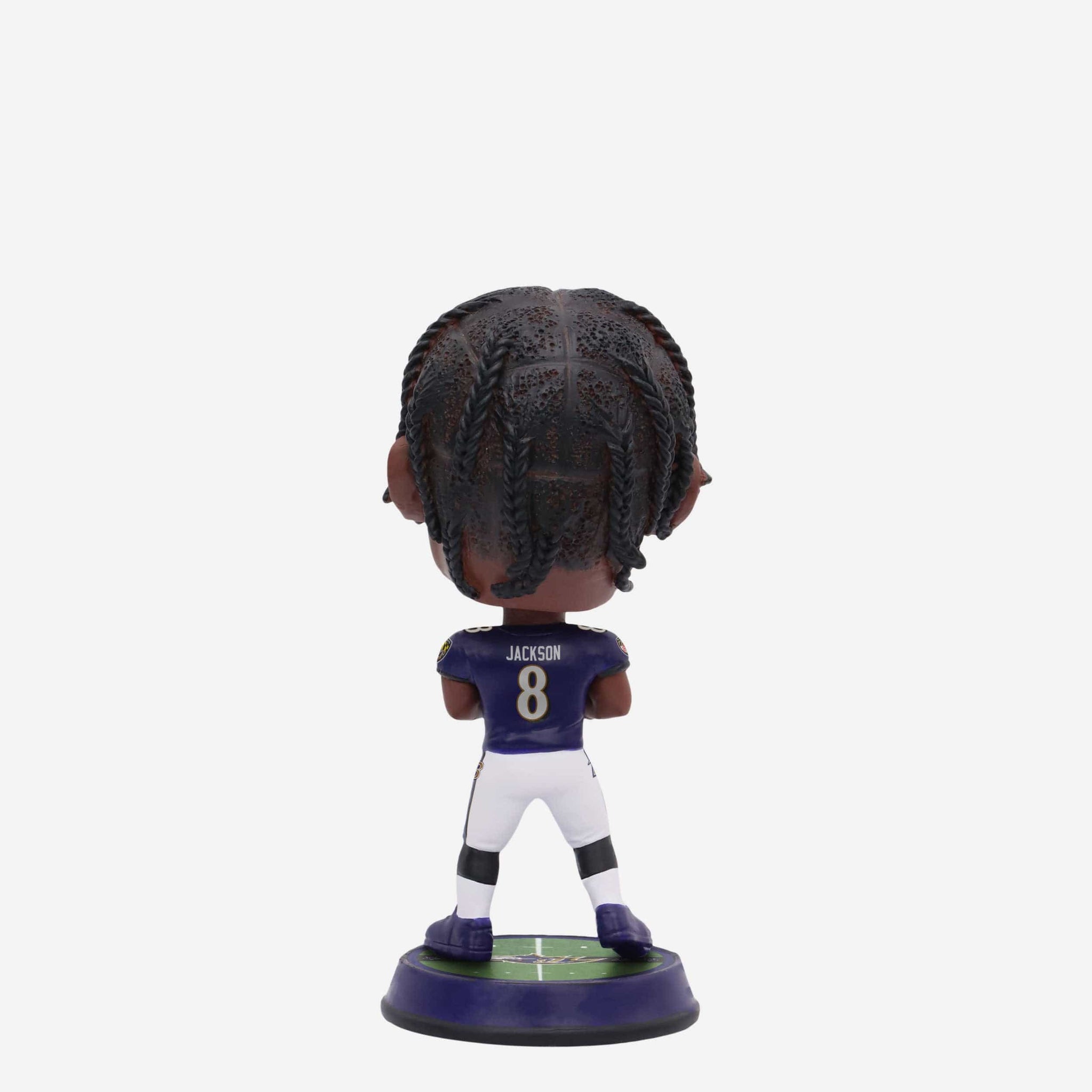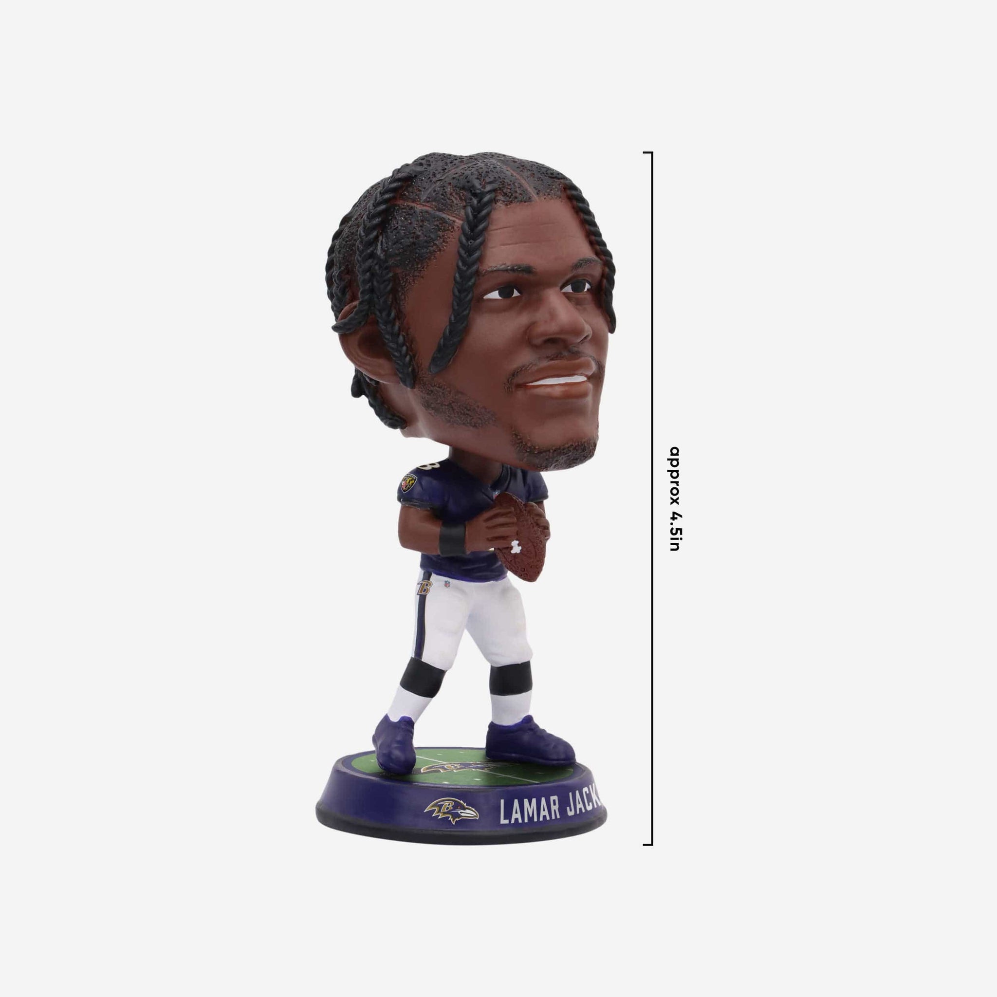 A tiny dose of team spirit, from Charm City to your collection. Let a little Ravens pride shine through in the form of the Lamar Jackson Baltimore Ravens Field Stripe Mini Bighead Bobblehead.