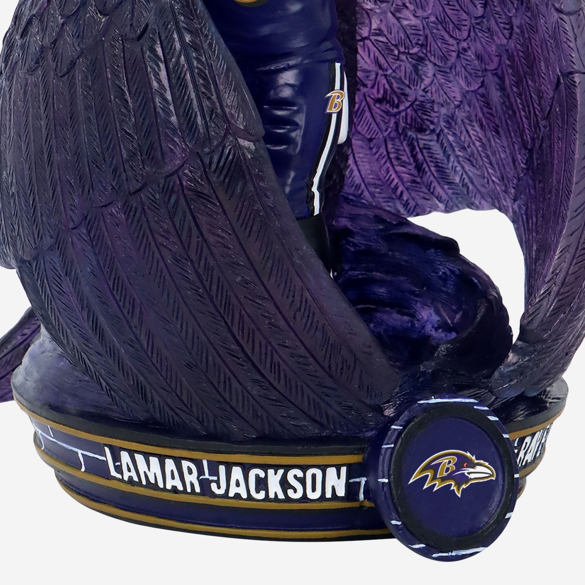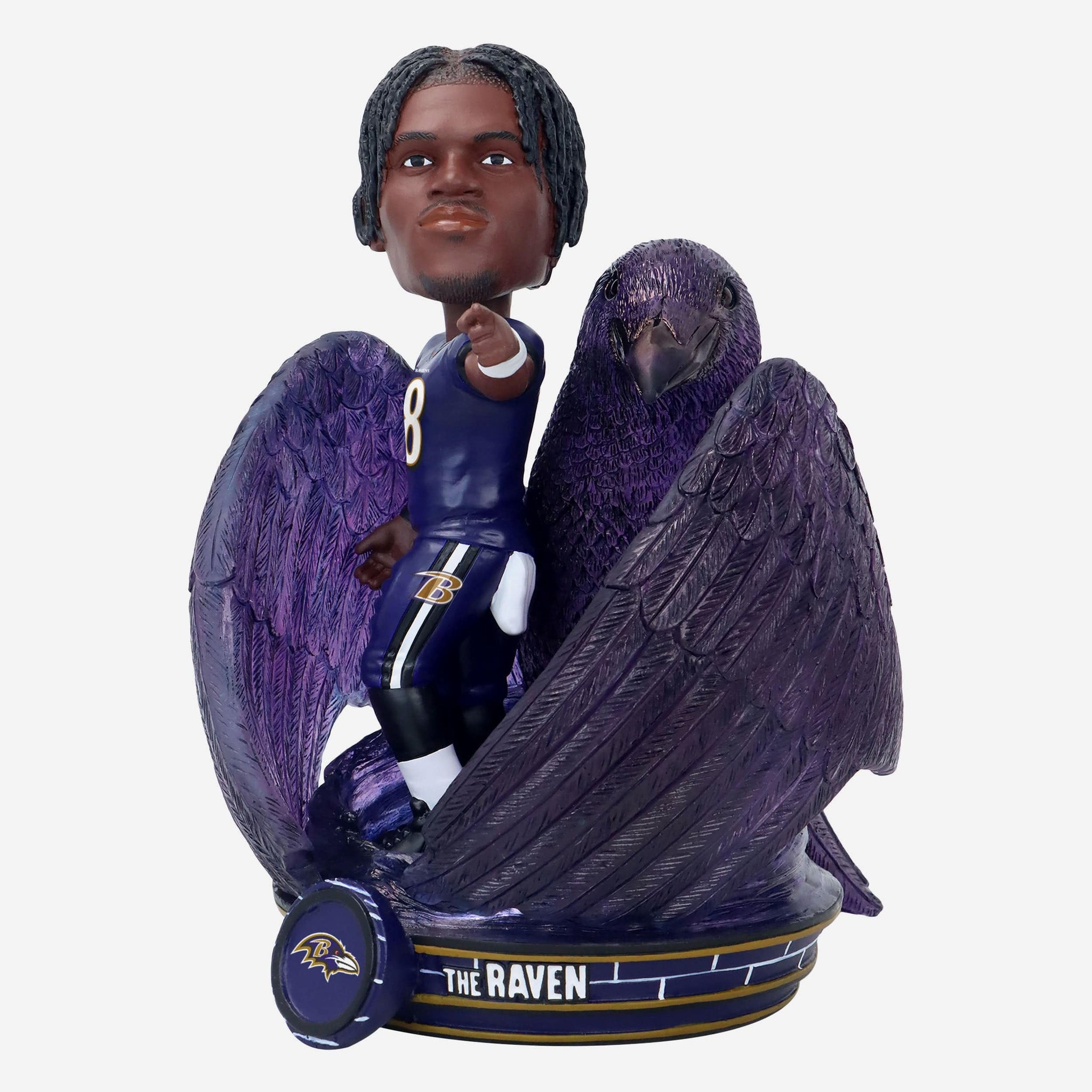 Unleash the Raven within! Take flight to greatness with this Lamar Jackson Baltimore Ravens Raven Spirit Animal Bobblehead.