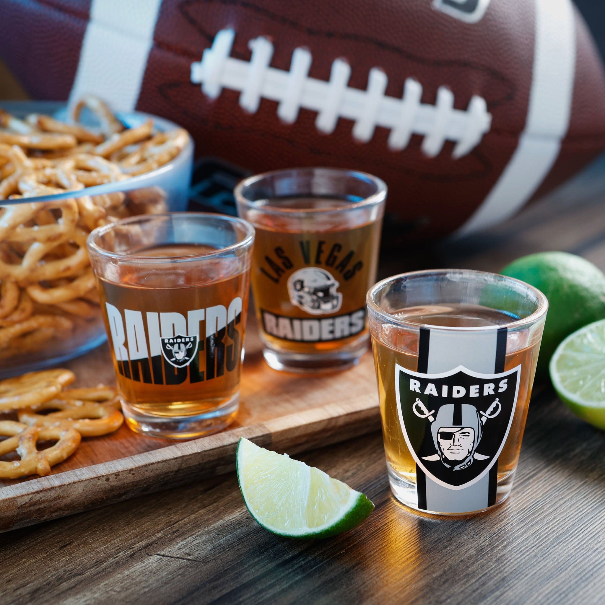 Gameday meets the night life. The Las Vegas Raiders 3 Pack Shot Glass is the perfect addition to the fancave of the mixologist in your life.