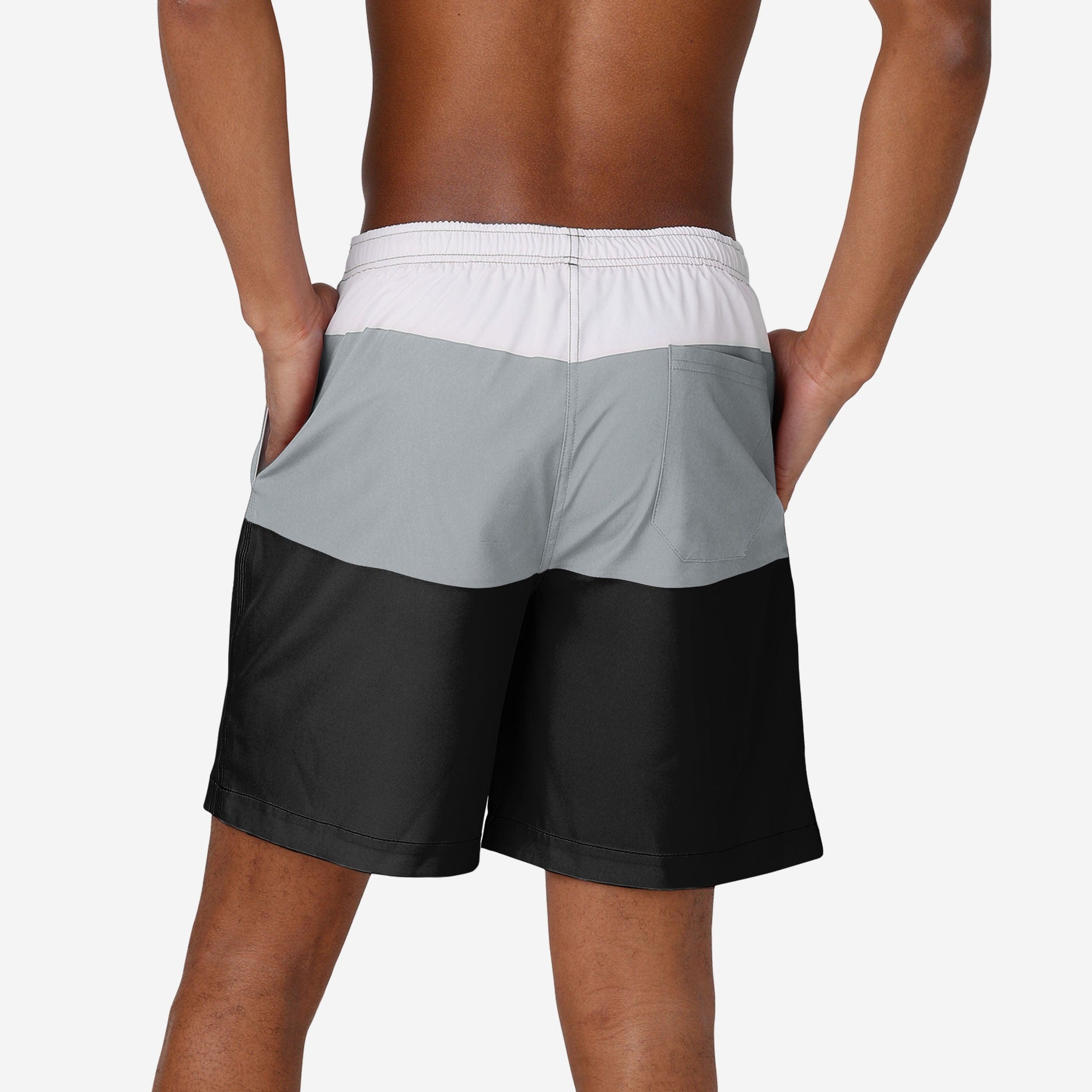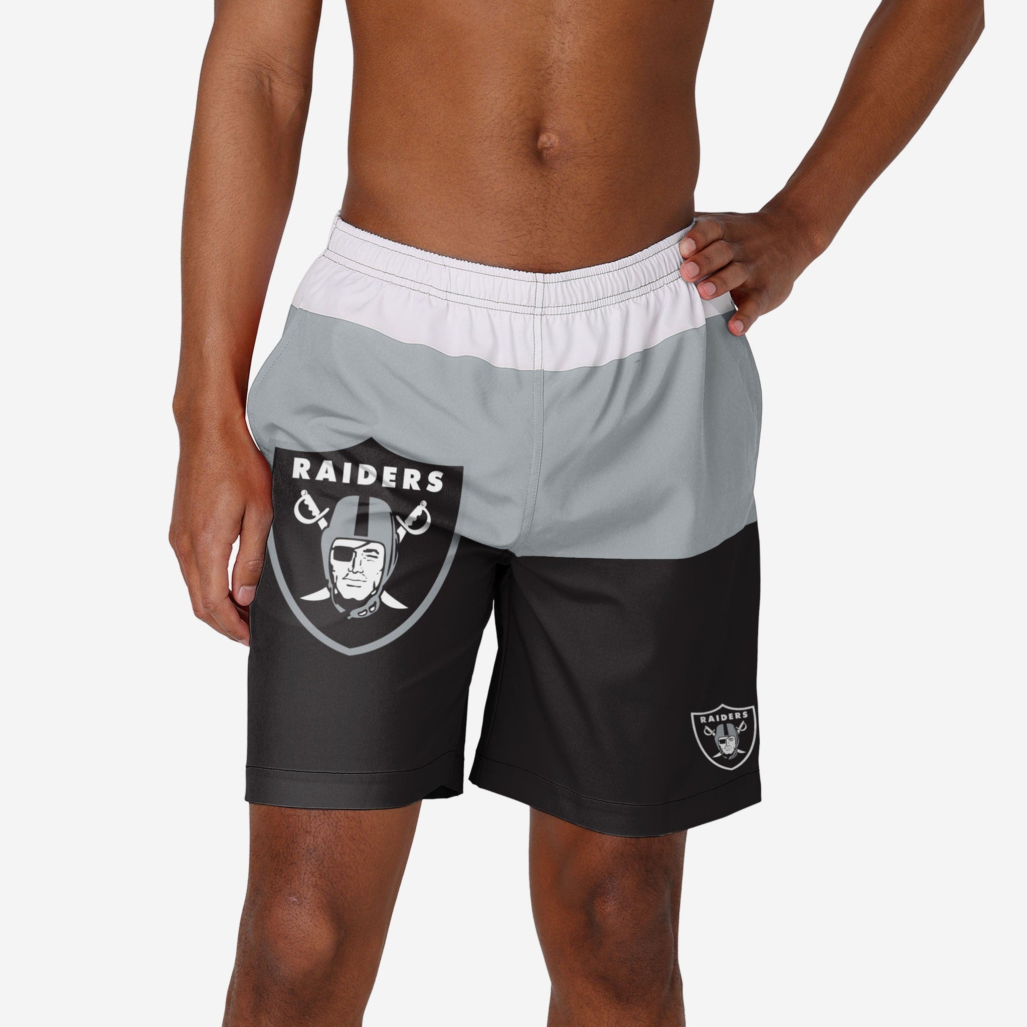Need a break from the heat of gameday competition? Cool off by going for a dip in these Las Vegas Raiders 3 Stripe Big Logo Traditional Swimming Trunks.