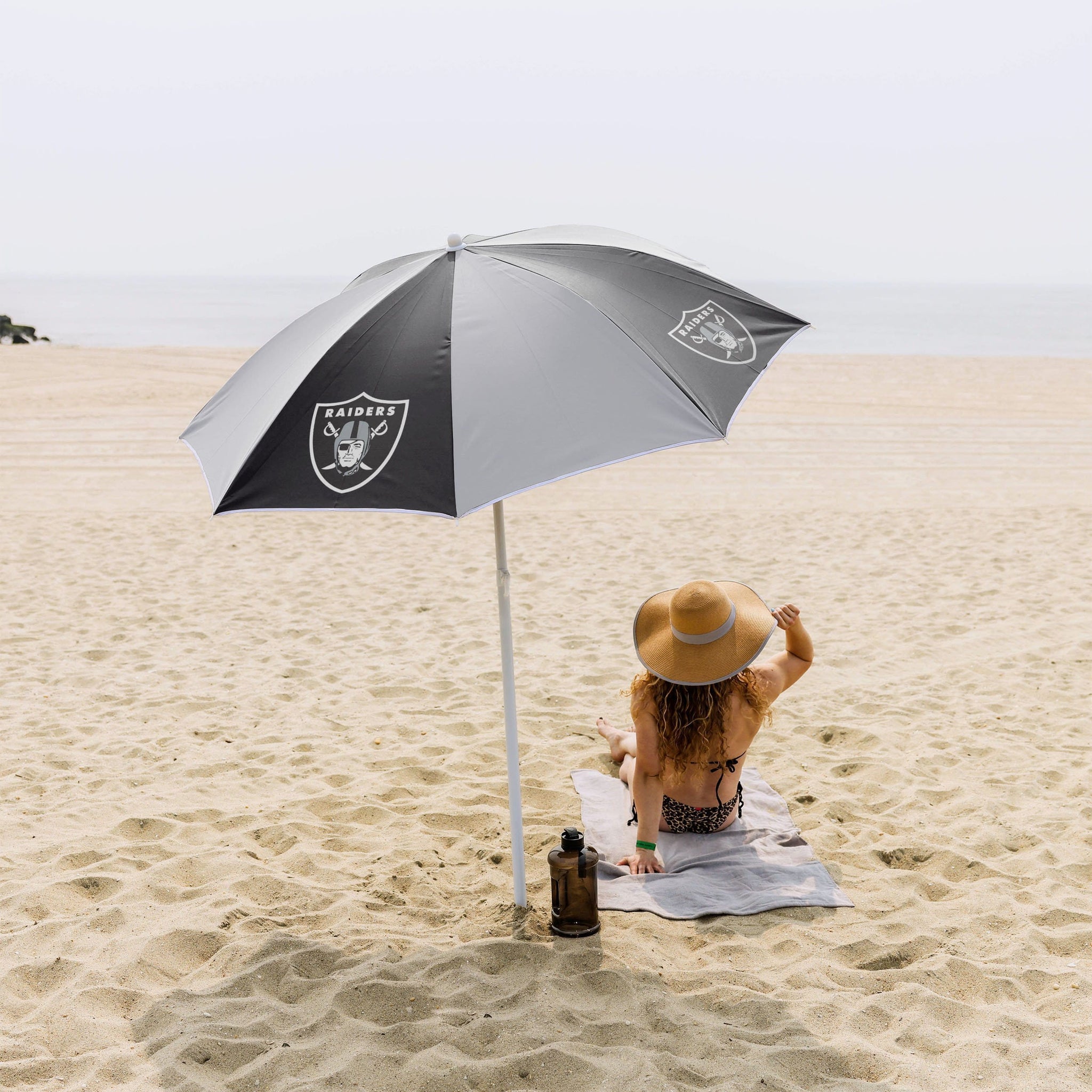 Beating the heat with this Las Vegas Raiders Beach Umbrella is a rare example of when throwing shade is actually a GOOD thing!