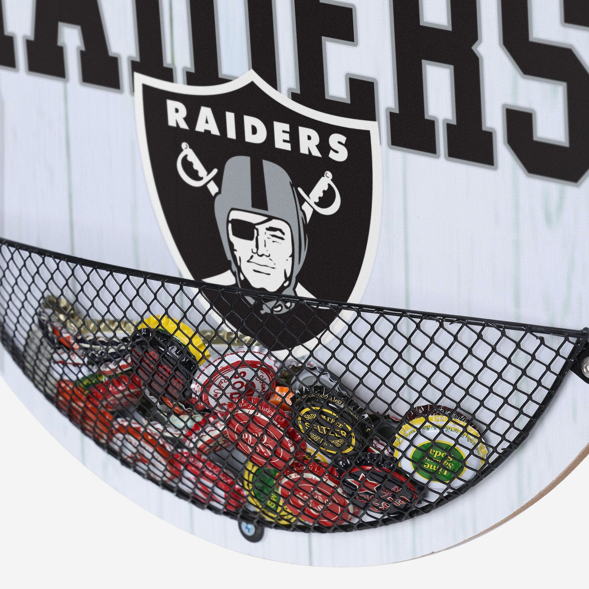 Pop the top and let the cap drop. Cleanup after gameday in the fancave is easy when you've got this Las Vegas Raiders Bottle Opener Cap Catcher Wall Sign.