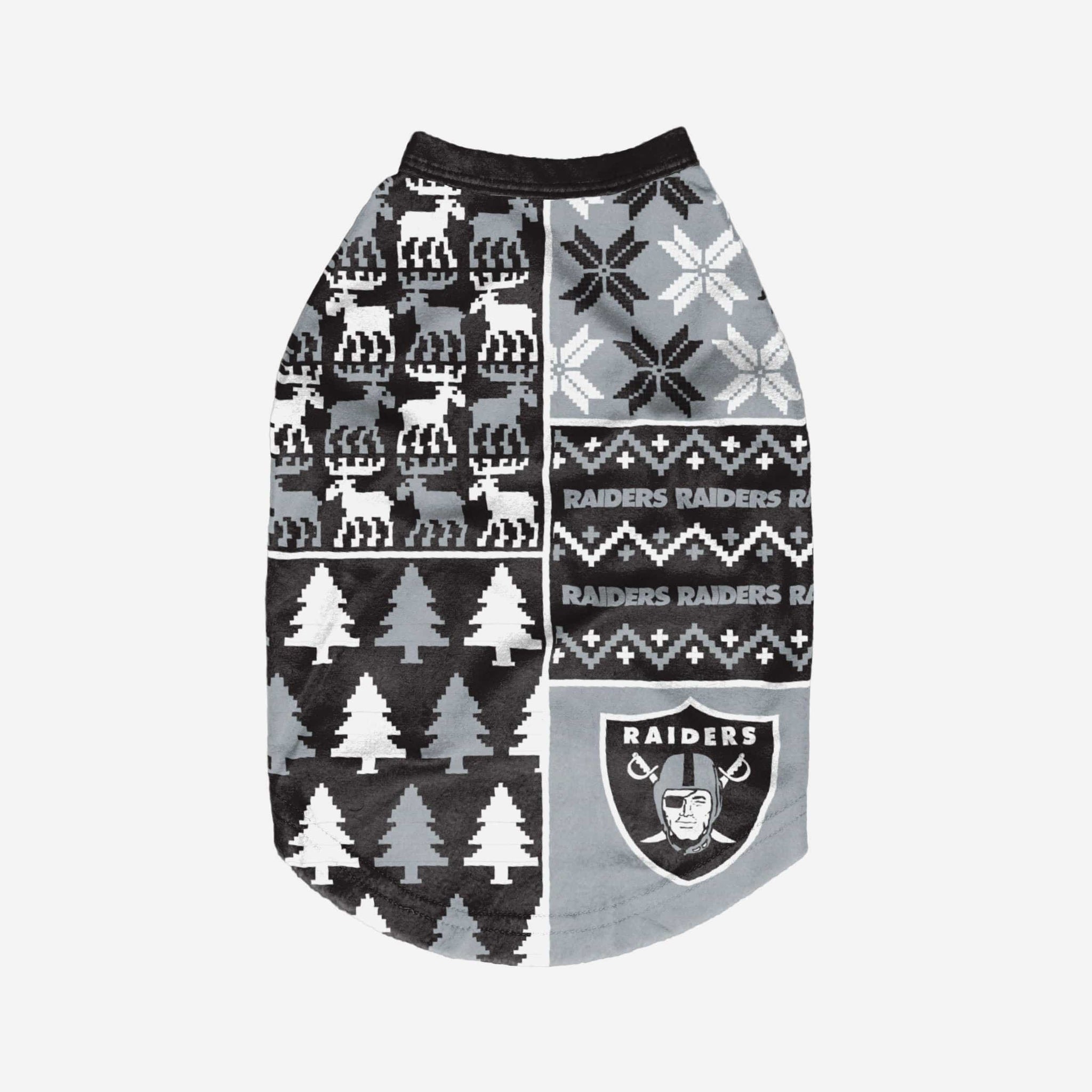 Show off your pet's holiday spirit with this dog sweater! Your good boy (or girl) will love this Las Vegas Raiders Busy Block Dog Sweater so much, they'll be saying "woof bark awooo" (that's "thank you" in pup language). Don't forget to match your canine's sweater with a set of matching holiday pajamas!