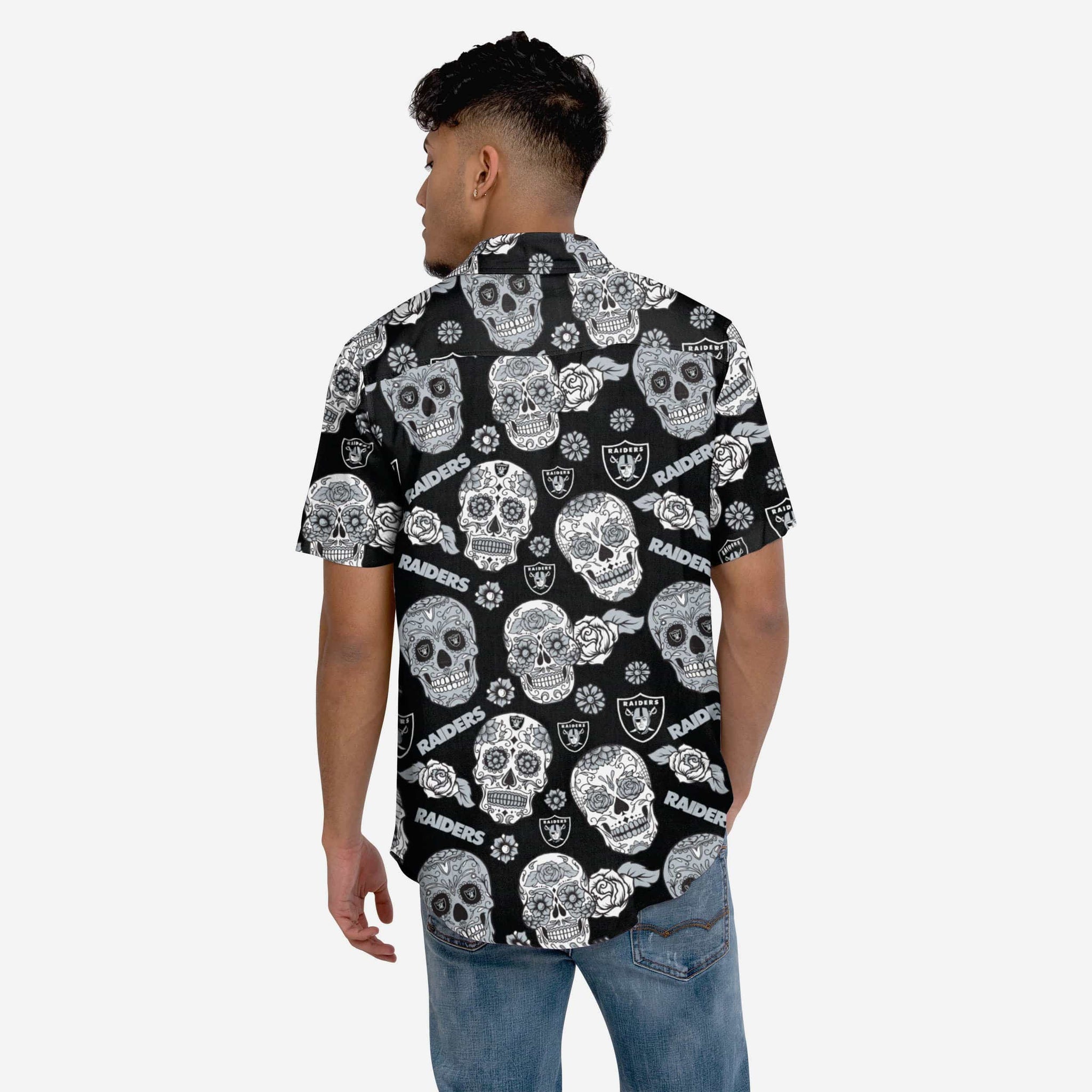 It's time to liven up your wardrobe! Dress to impress with the spooky style of this Las Vegas Raiders Day of the Dead Button Up Shirt.