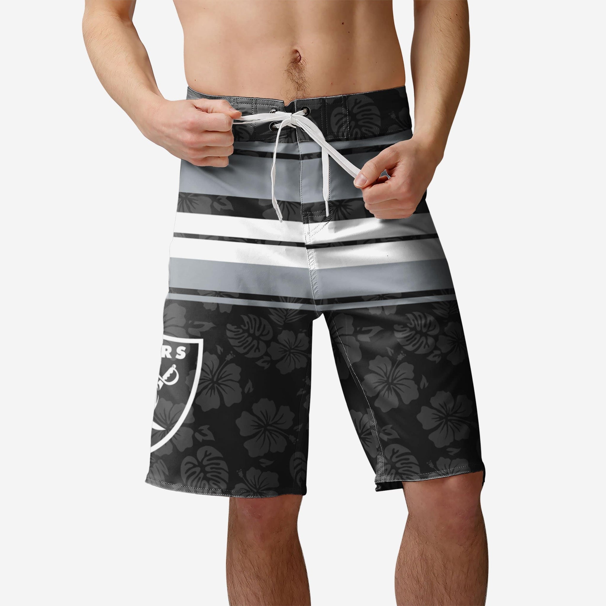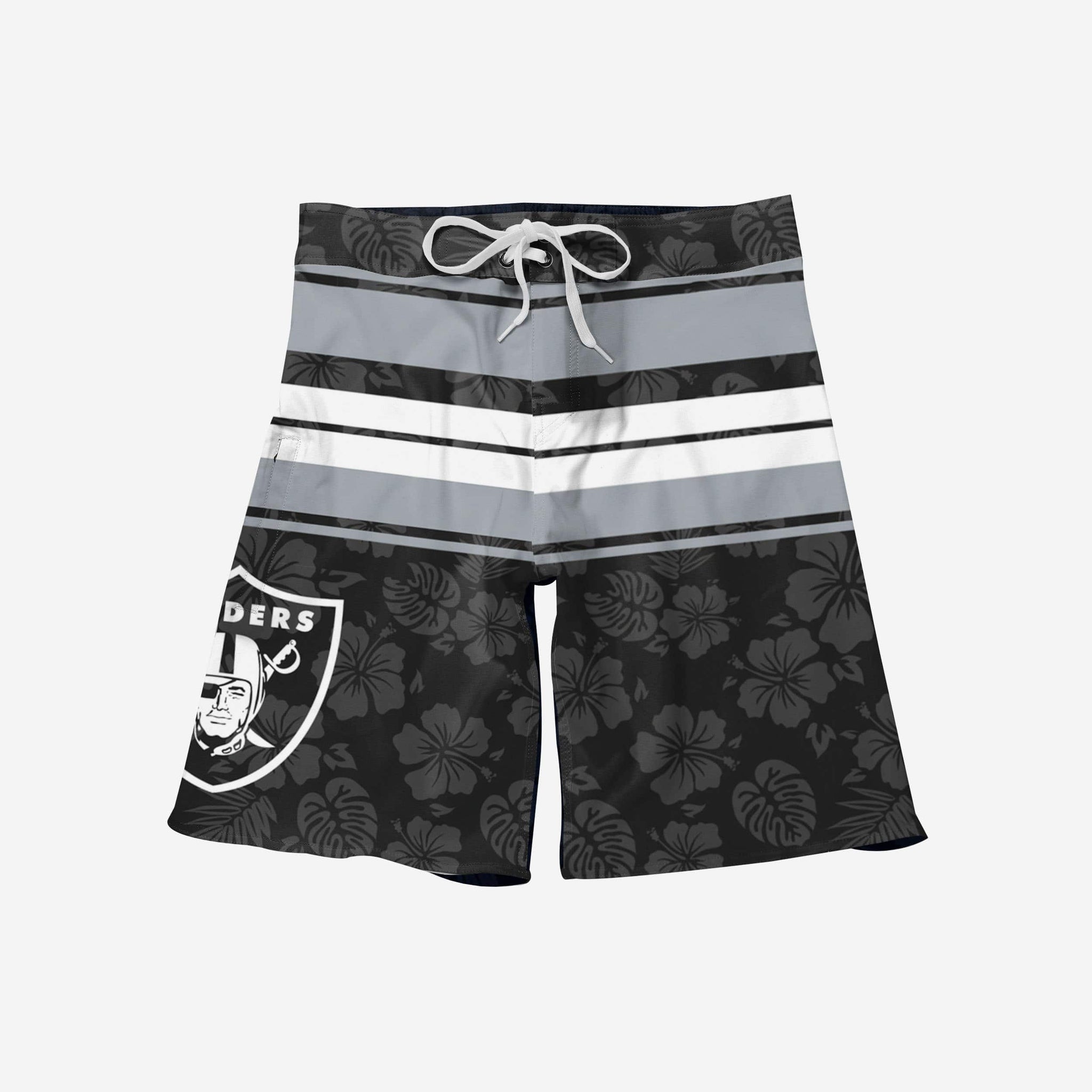 You know those awesome grand prizes you can win at boardwalk games? These Las Vegas Raiders Hibiscus Boardwalk Stripe Boardshorts are just as awesome, but they're way easier to get.
