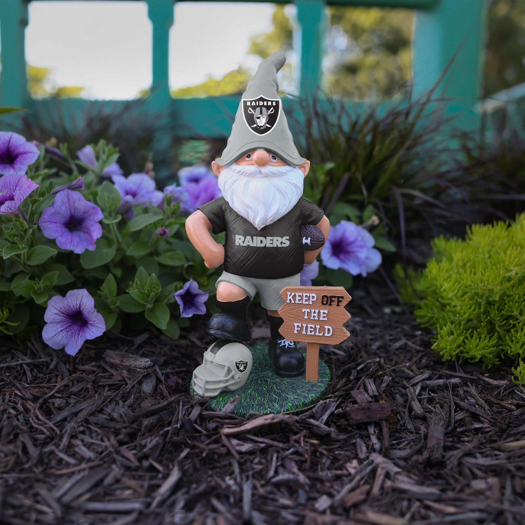 Your lawn means a lot to you. Make sure it's free of rival team fans by fending them off with this Las Vegas Raiders Keep Off the Field Gnome!