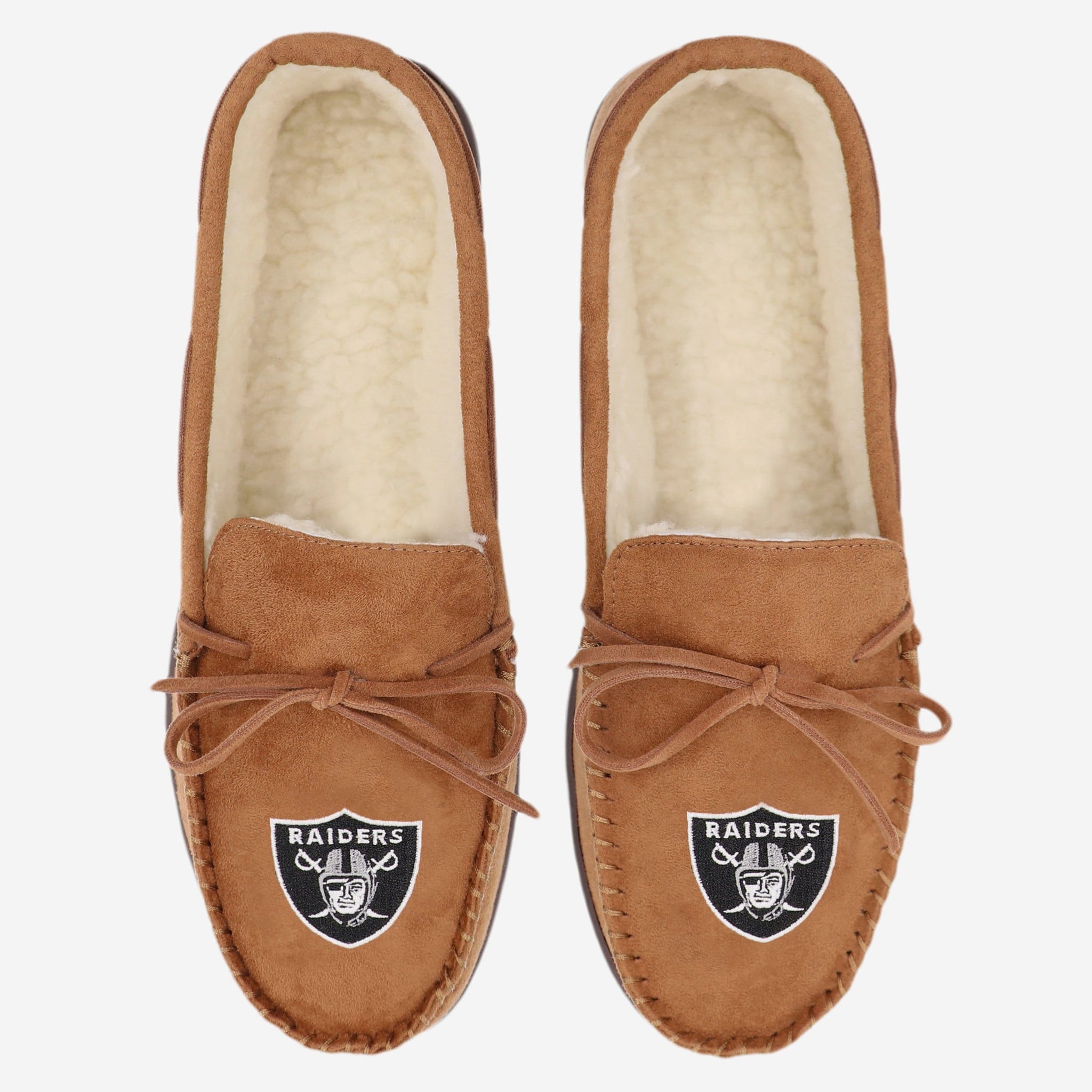 Moccasins? Cool. Comfy slippers? Also cool. Las Vegas Raiders Moccasin Slippers? Mind = blown. The future is now, friend.