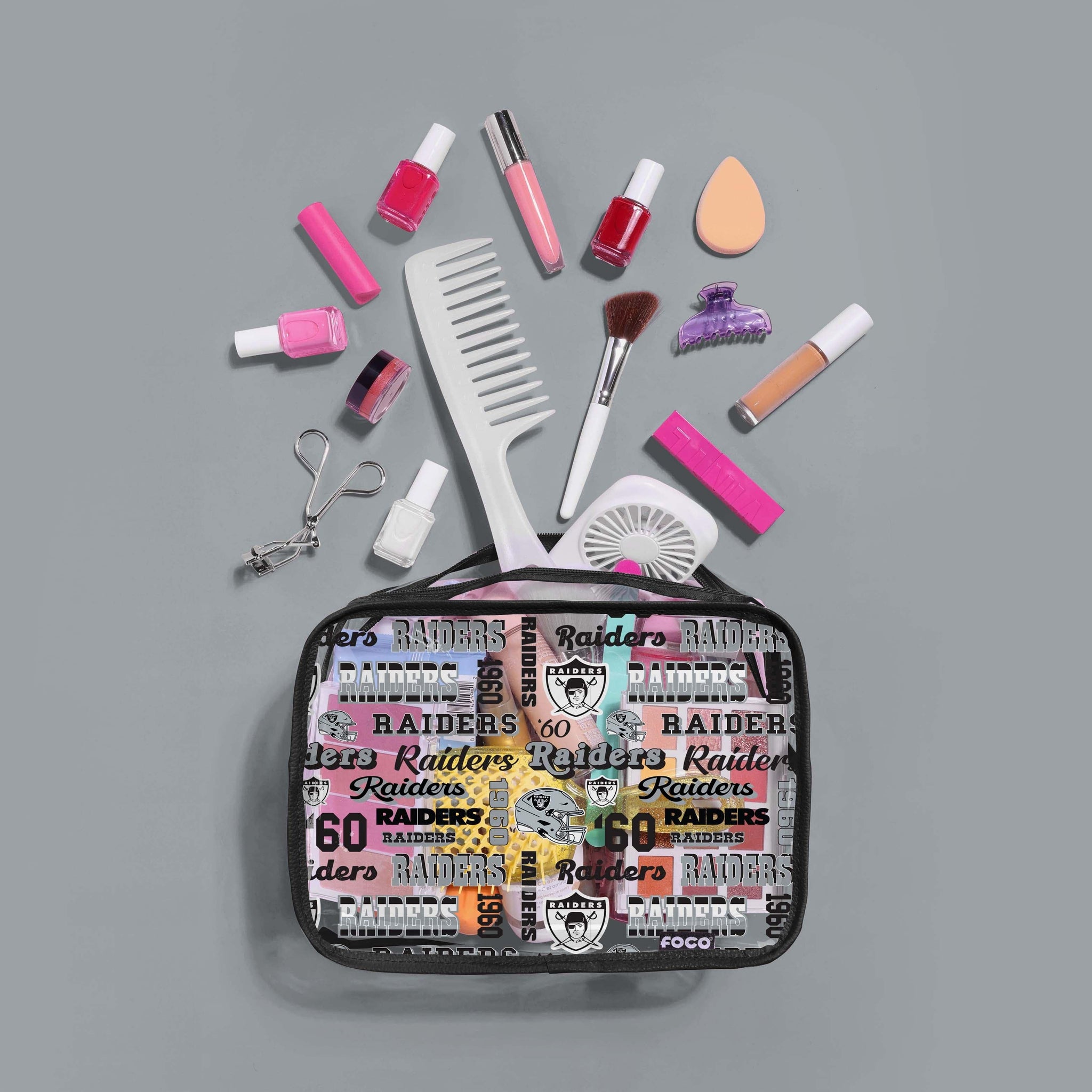 Lipstick. Hair care. Fandom. Get ready to carry it all! Wherever you go, let everyone clearly see which team you root for with a Las Vegas Raiders Repeat Retro Print Clear Cosmetic Bag.