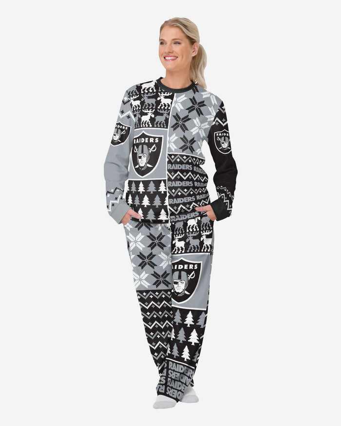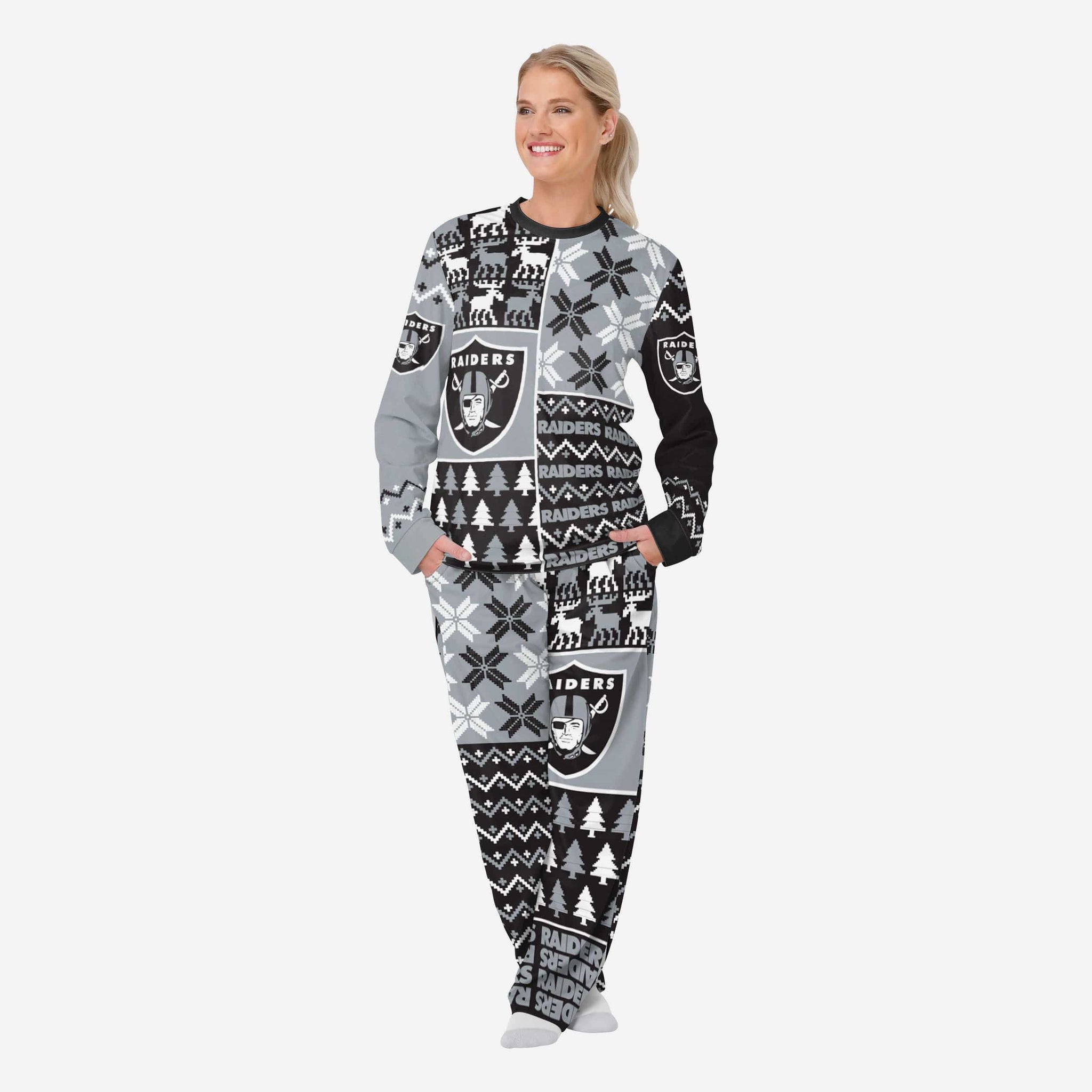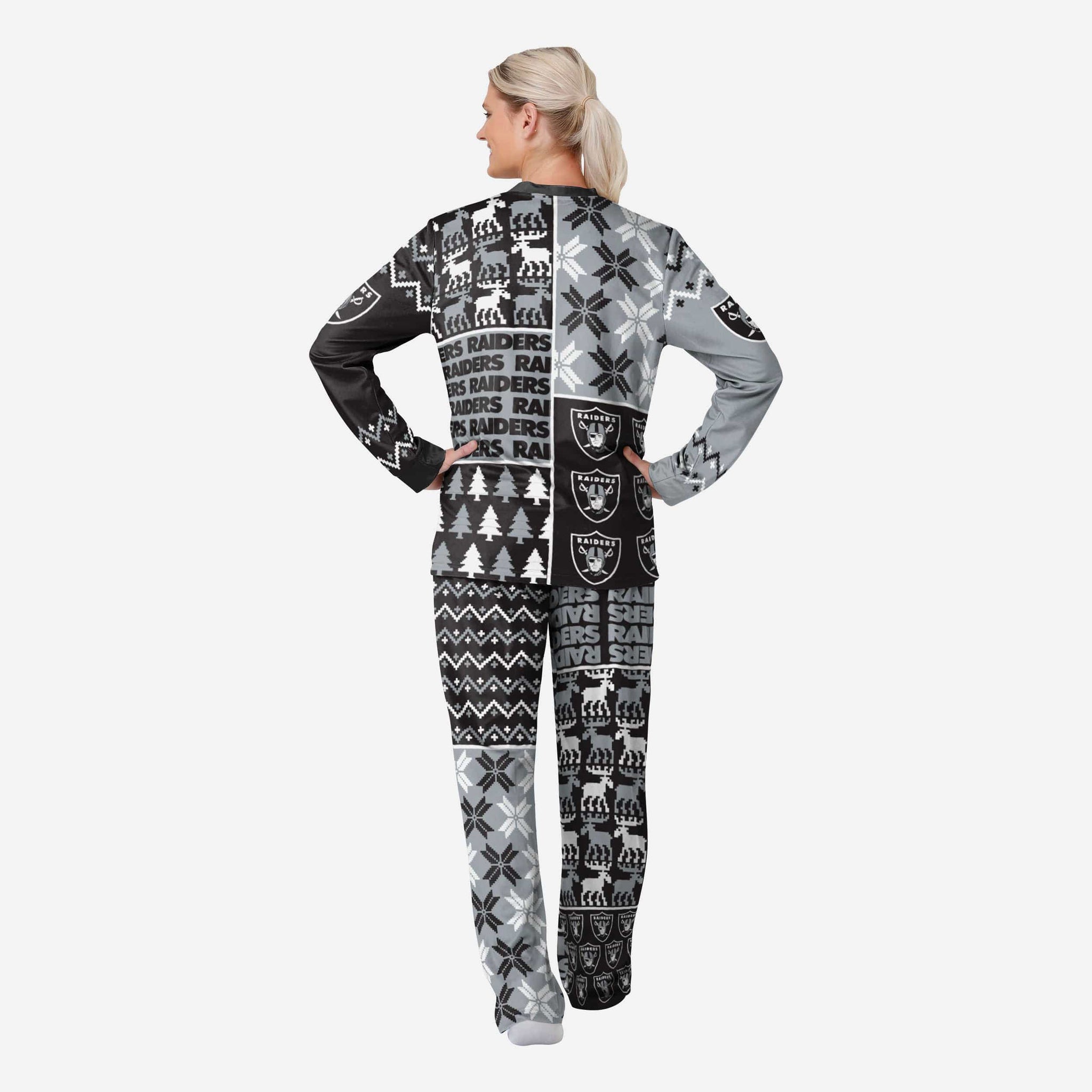 Get some matching family pajamas and dress to impress this holiday season! You won't want to miss these women's team pajamas! These women's PJ's are comfortable and show off your team spirit in the form of some sweet women's jammies. Introducing the Las Vegas Raiders Women's Busy Block Family Holiday Pajamas! Don't forget to take your holiday photo with the whole family wearing matching Christmas pajamas!