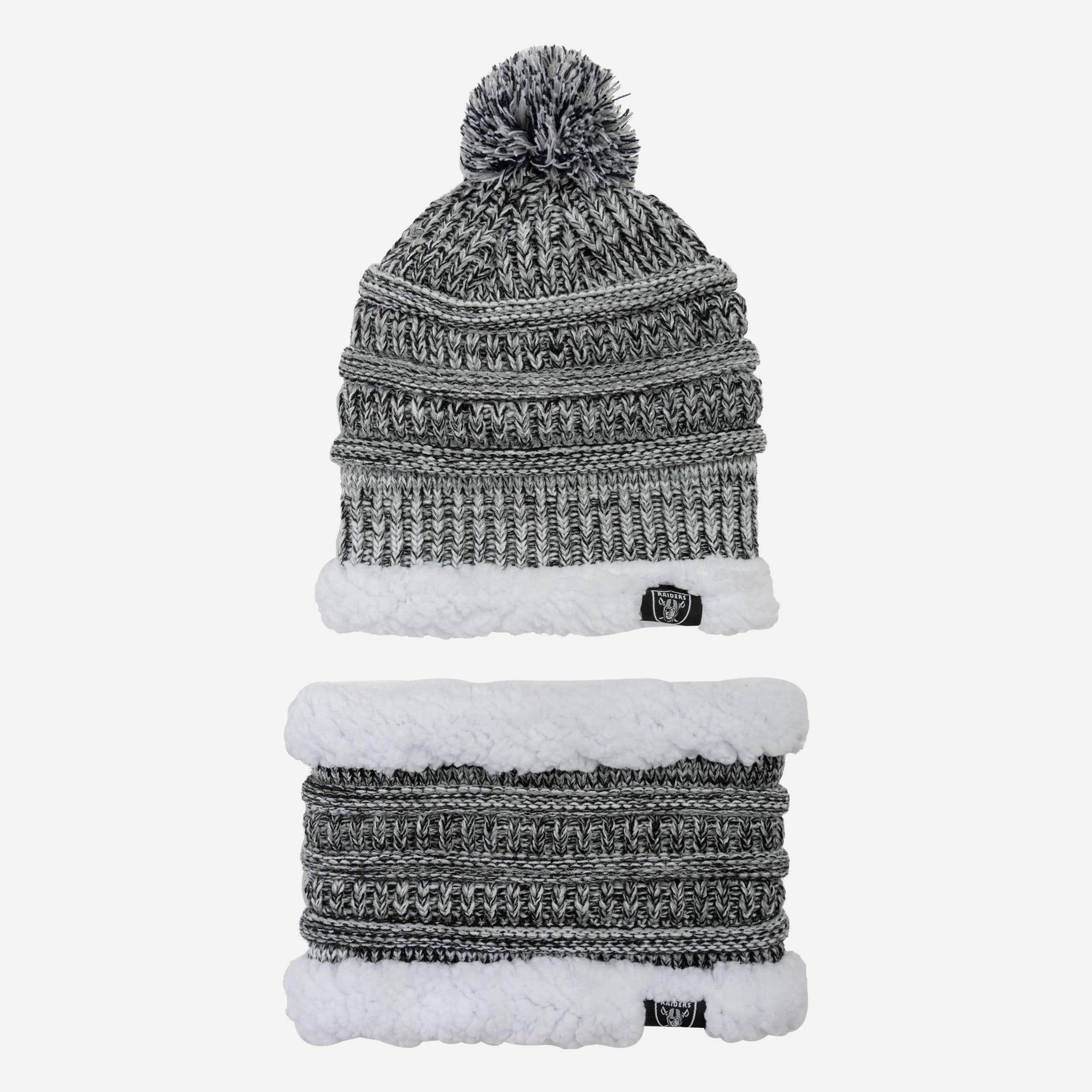 Stay warm all winter long by covering up with the Las Vegas Raiders Color Wave Chunky Beanie & Gaiter Scarf Set!