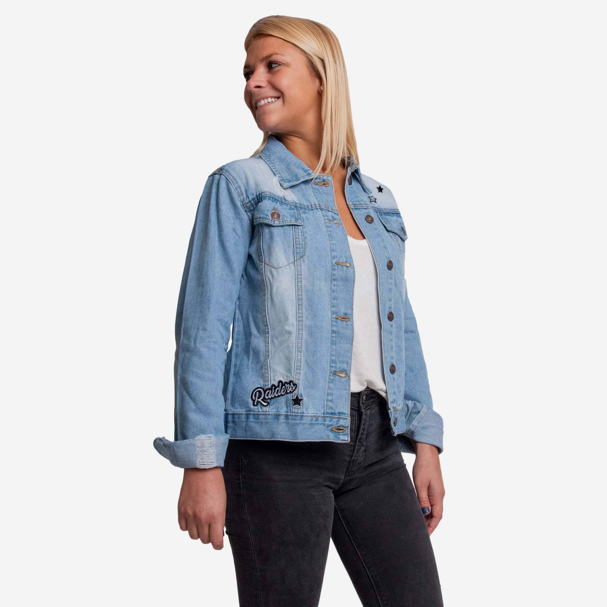 A denim delight. A jean jacket jamboree. Blue bliss. However you describe the feeling of rocking this Las Vegas Raiders Women's Denim Jacket, you'll always feel great knowing you're the best-dressed fan around.