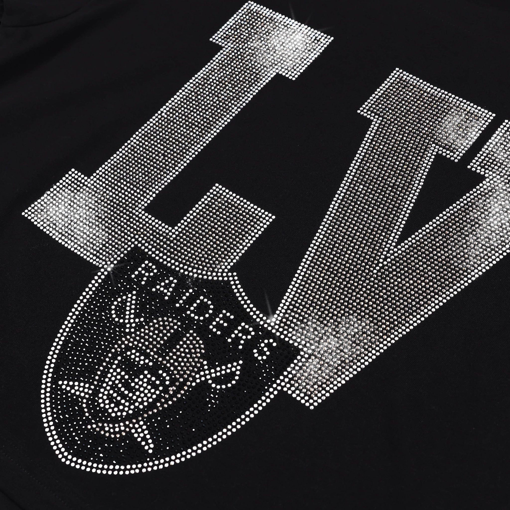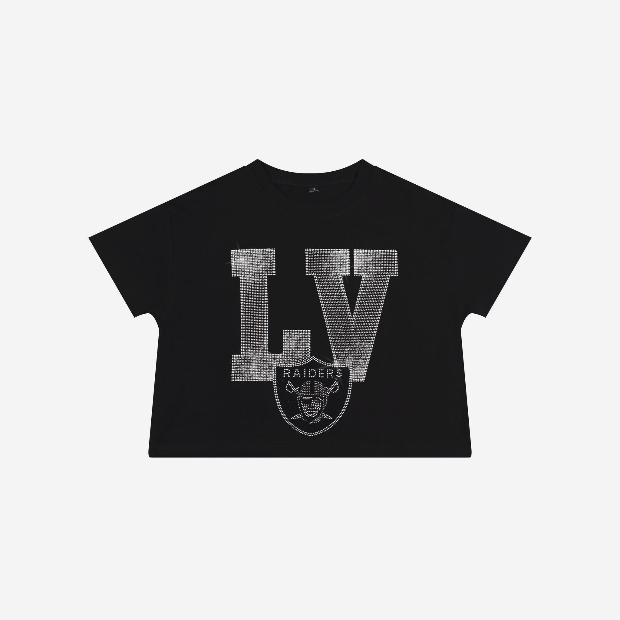 Victory looks good on you, and so will this Las Vegas Raiders Womens Rhinestone Logo Crop Top. With its flattering cropped fit and dazzling team pride, this top is your go-to for standing out in the crowd and showing up for your squad in style.