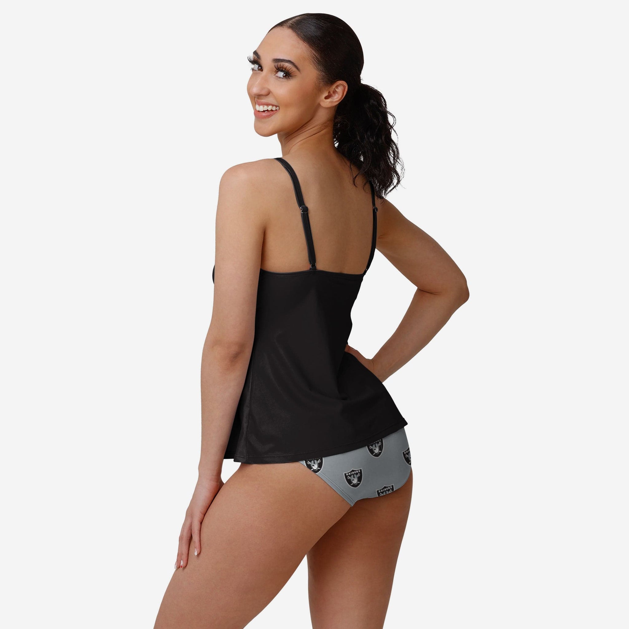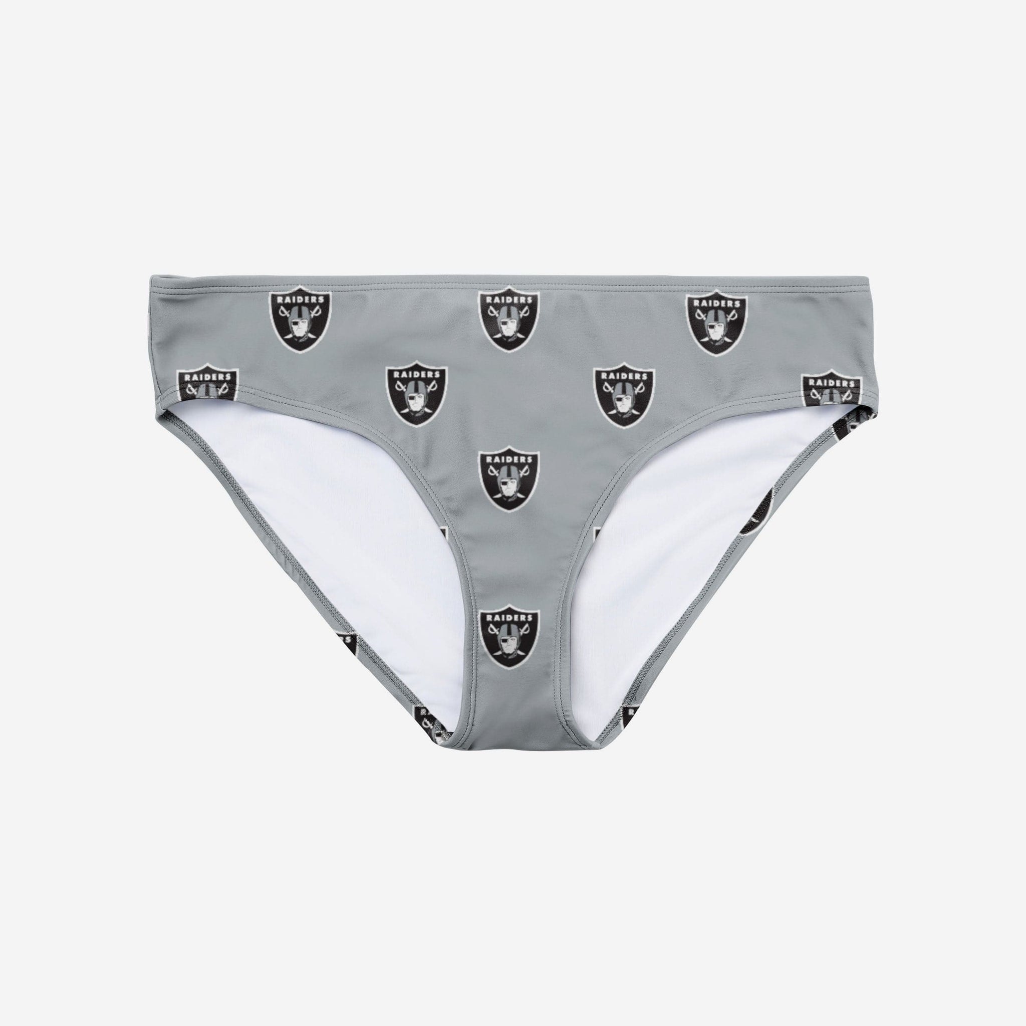 Trying to beat the sweltering heat? Dive into the deep end of the fan pool with this Las Vegas Raiders Women's Summertime Mini Print Bikini Bottom.