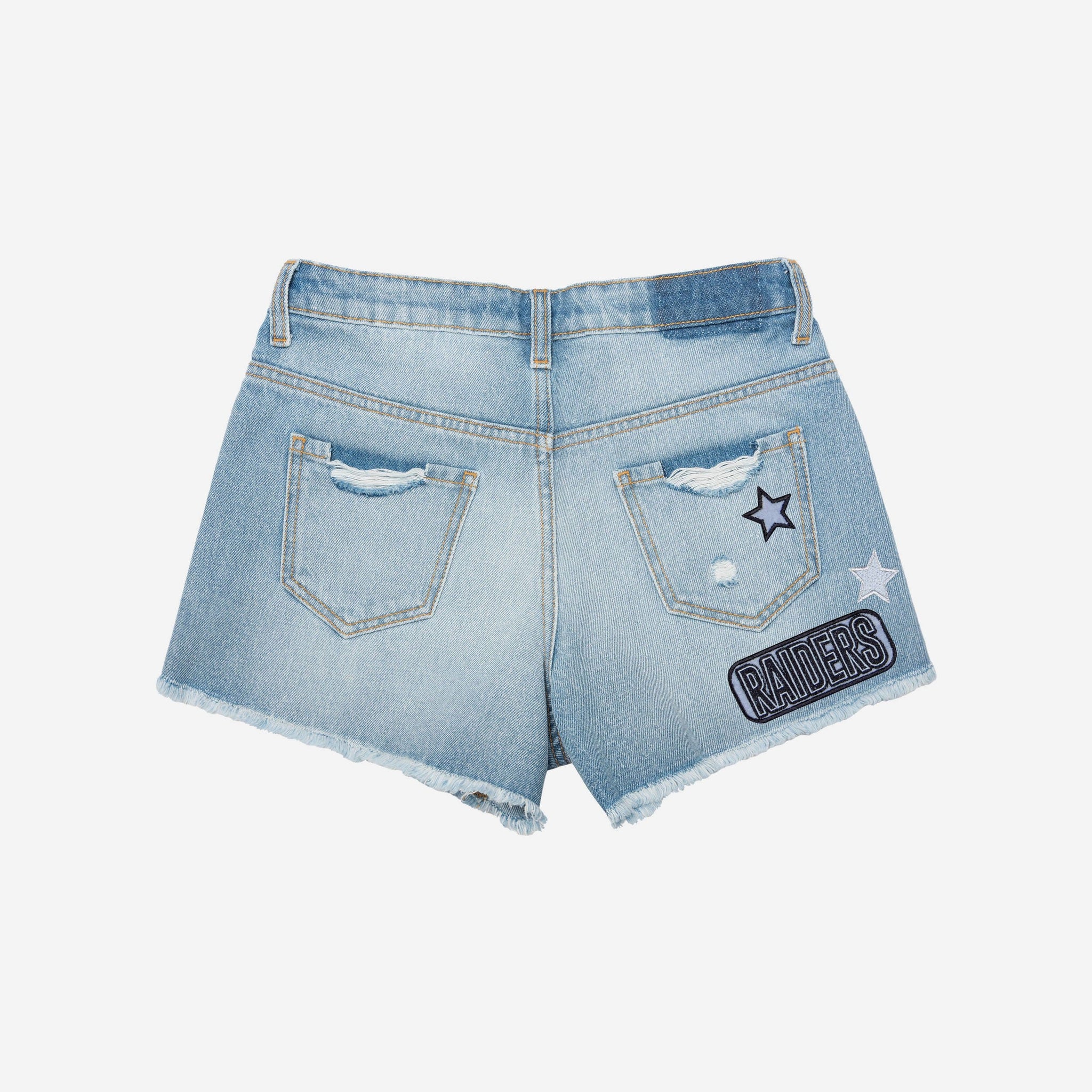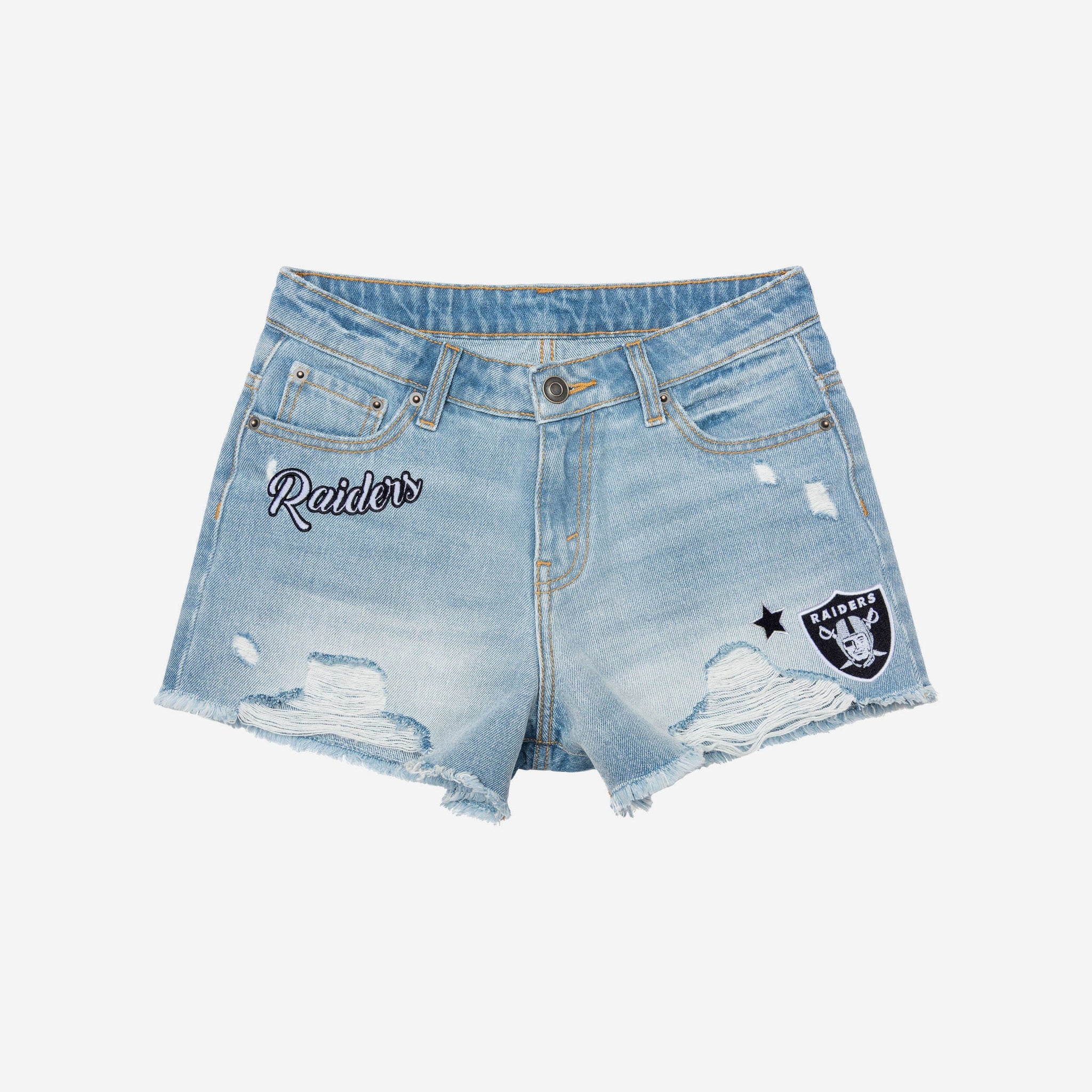 Just because the temperature outside is rising doesn't mean you should stop bringing the heat. Dress to impress at every game, tailgate, concert, barbecue, or wherever your fandom takes you with these Las Vegas Raiders Women's Team Logo Denim Shorts.