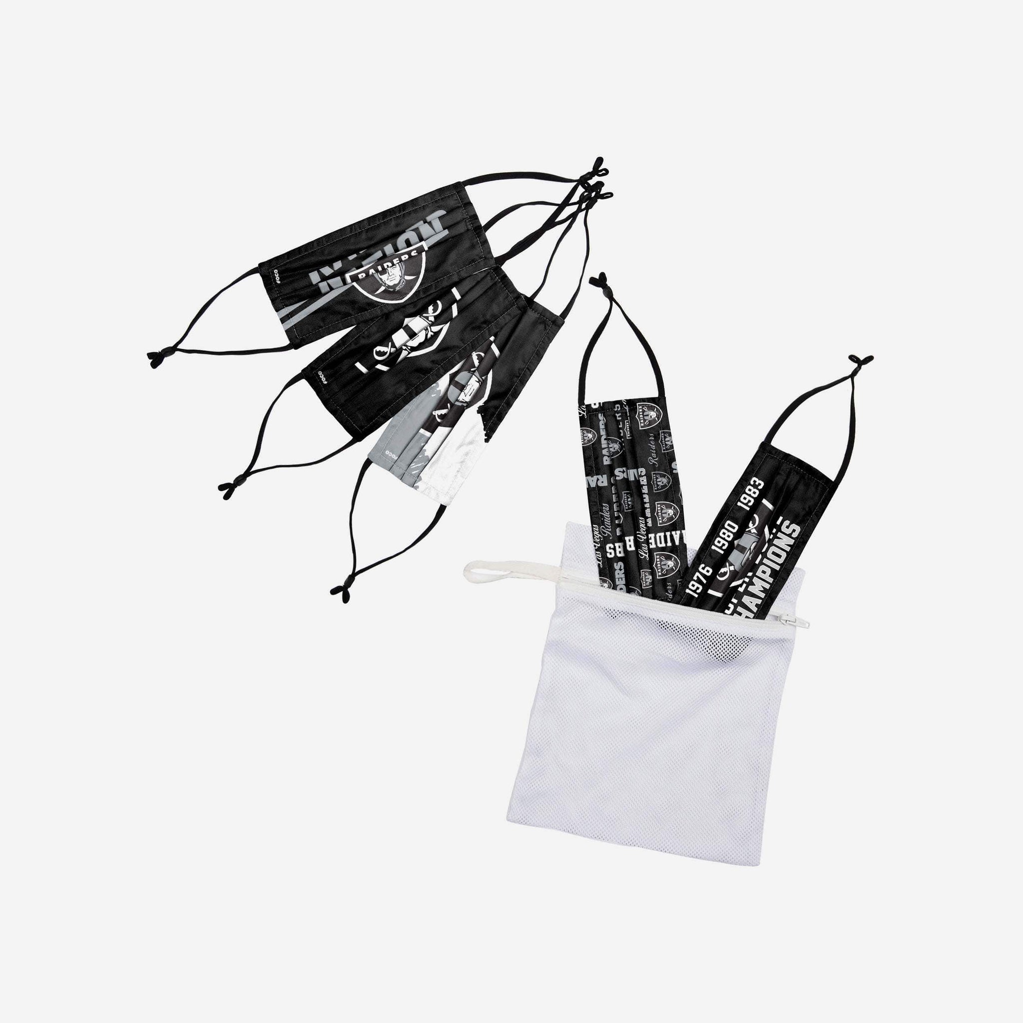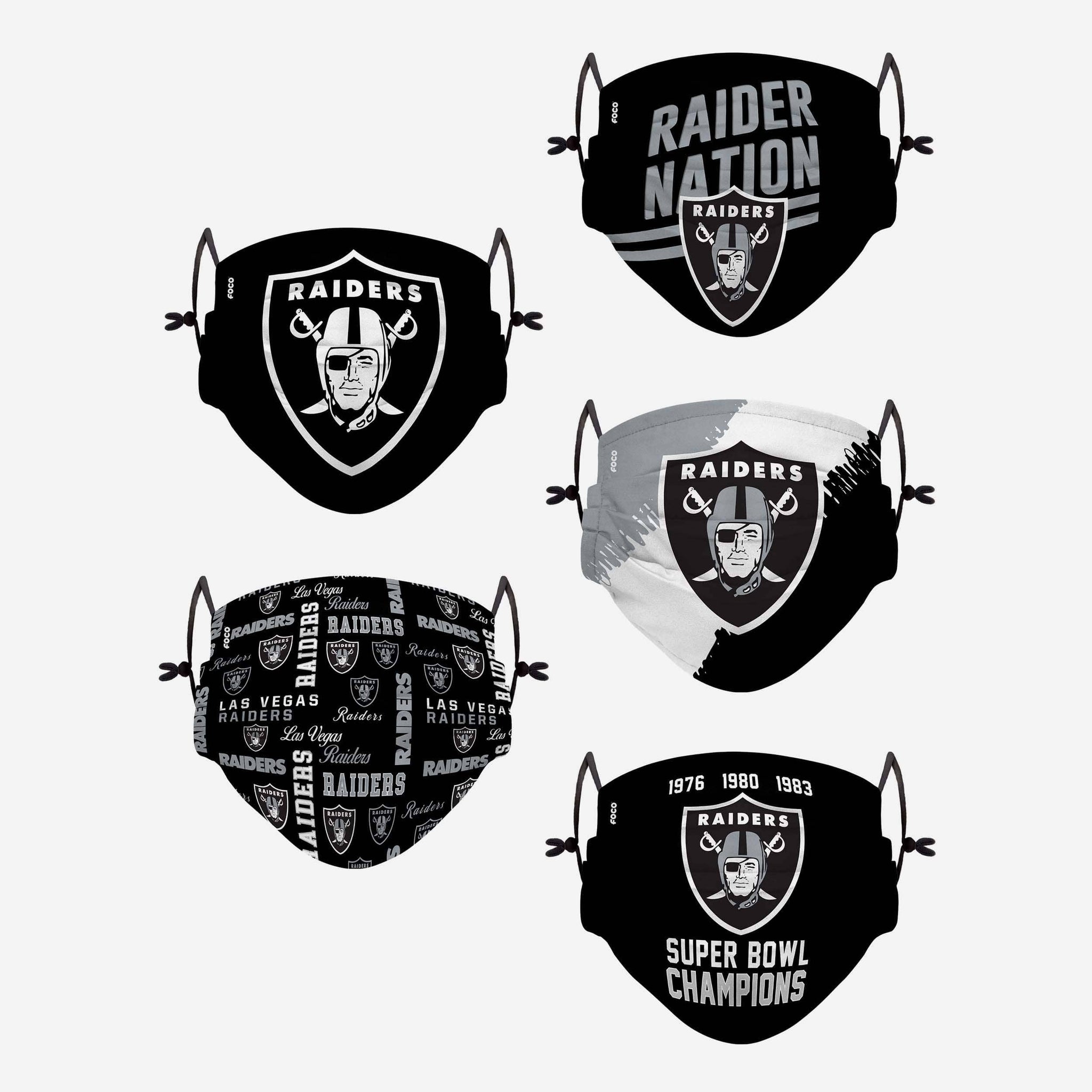 Cover up while you represent your favorite team in this Las Vegas Raiders Youth Rising Stars Adjustable 5 Pack Face Covering!