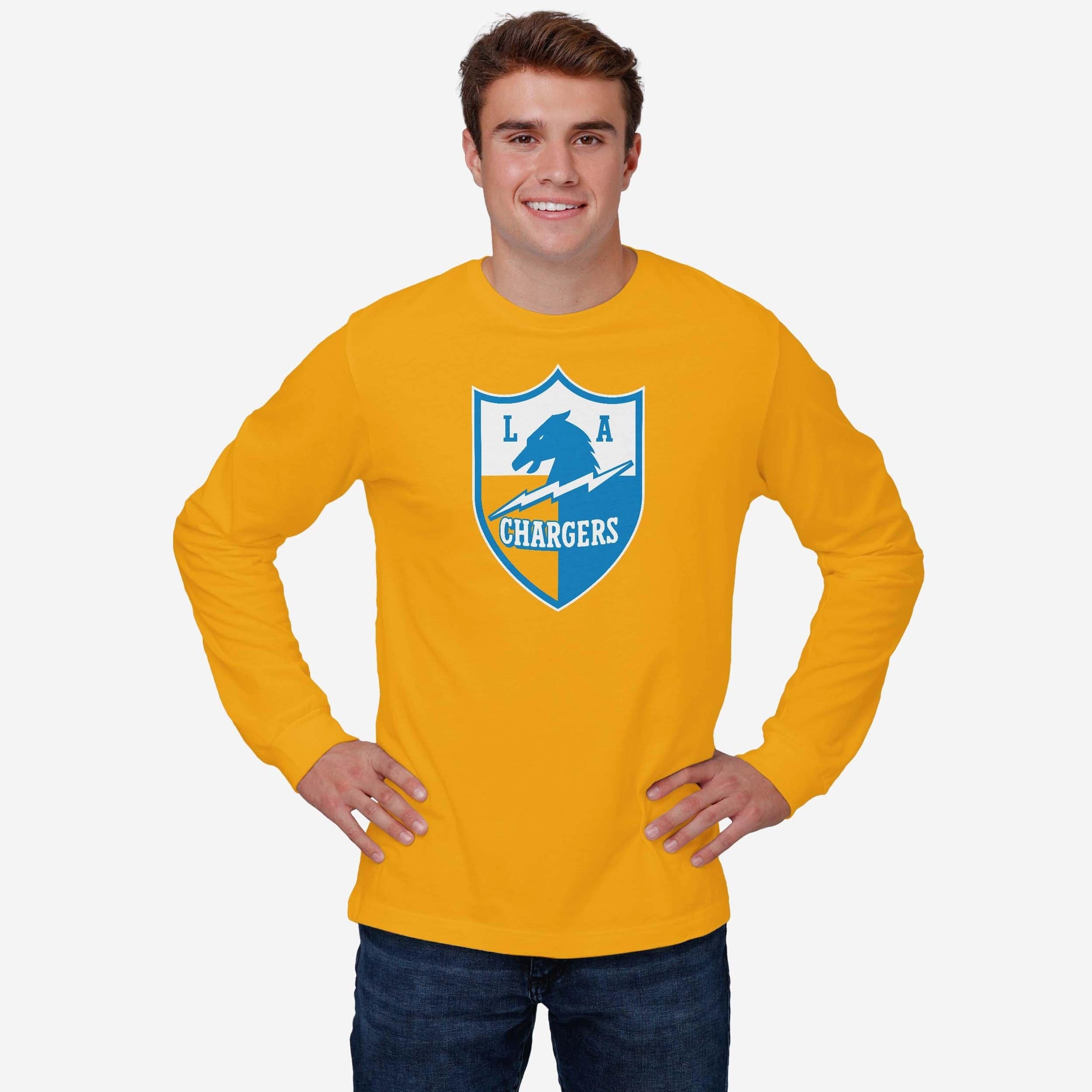 Los Angeles Chargers 1961 Retro Logo Long Sleeve T-Shirt FOCO Gold S - FOCO.com