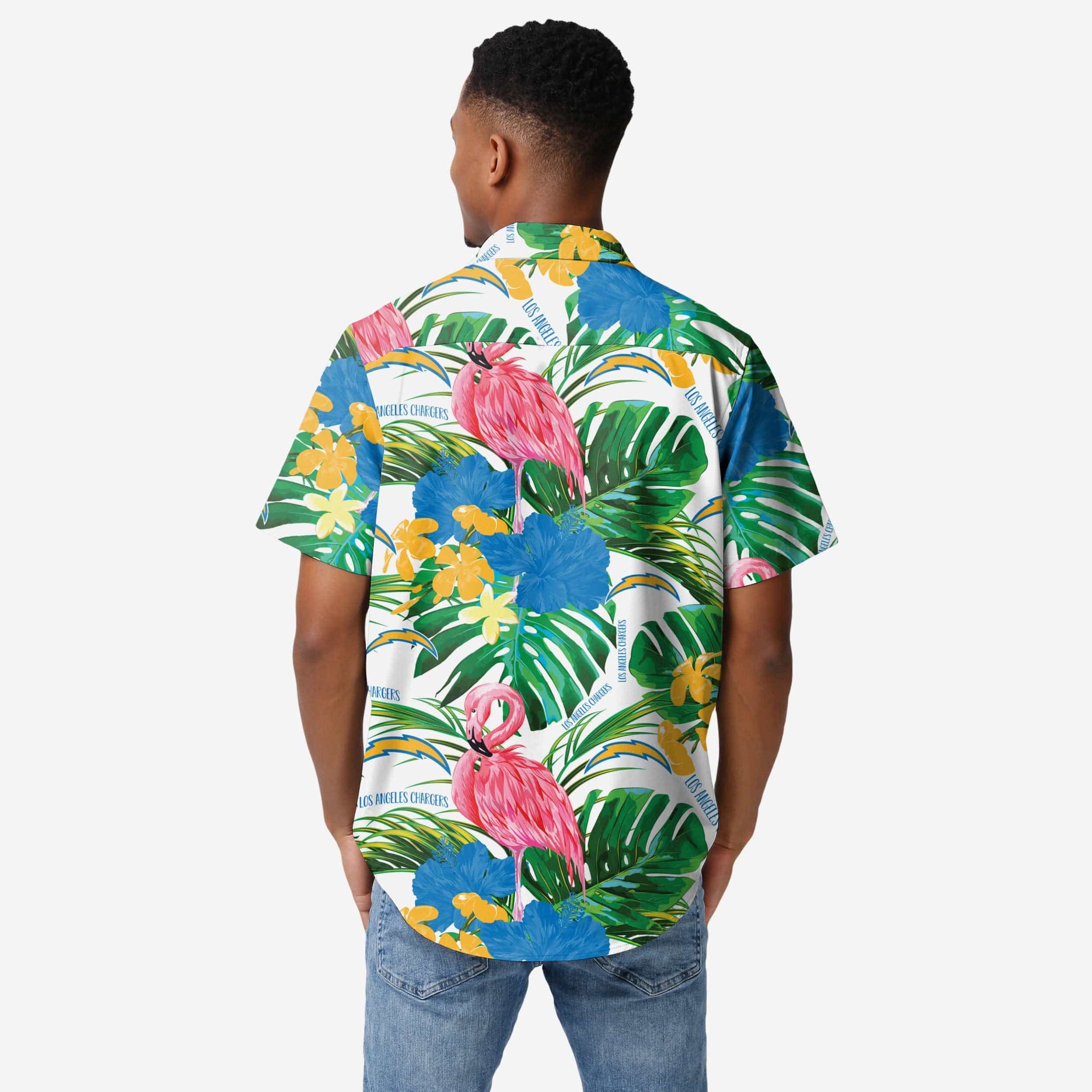 Aloha, party people! No need to set your watch - You're always on island time when you're rocking this Los Angeles Chargers Flamingo Button Up Shirt.