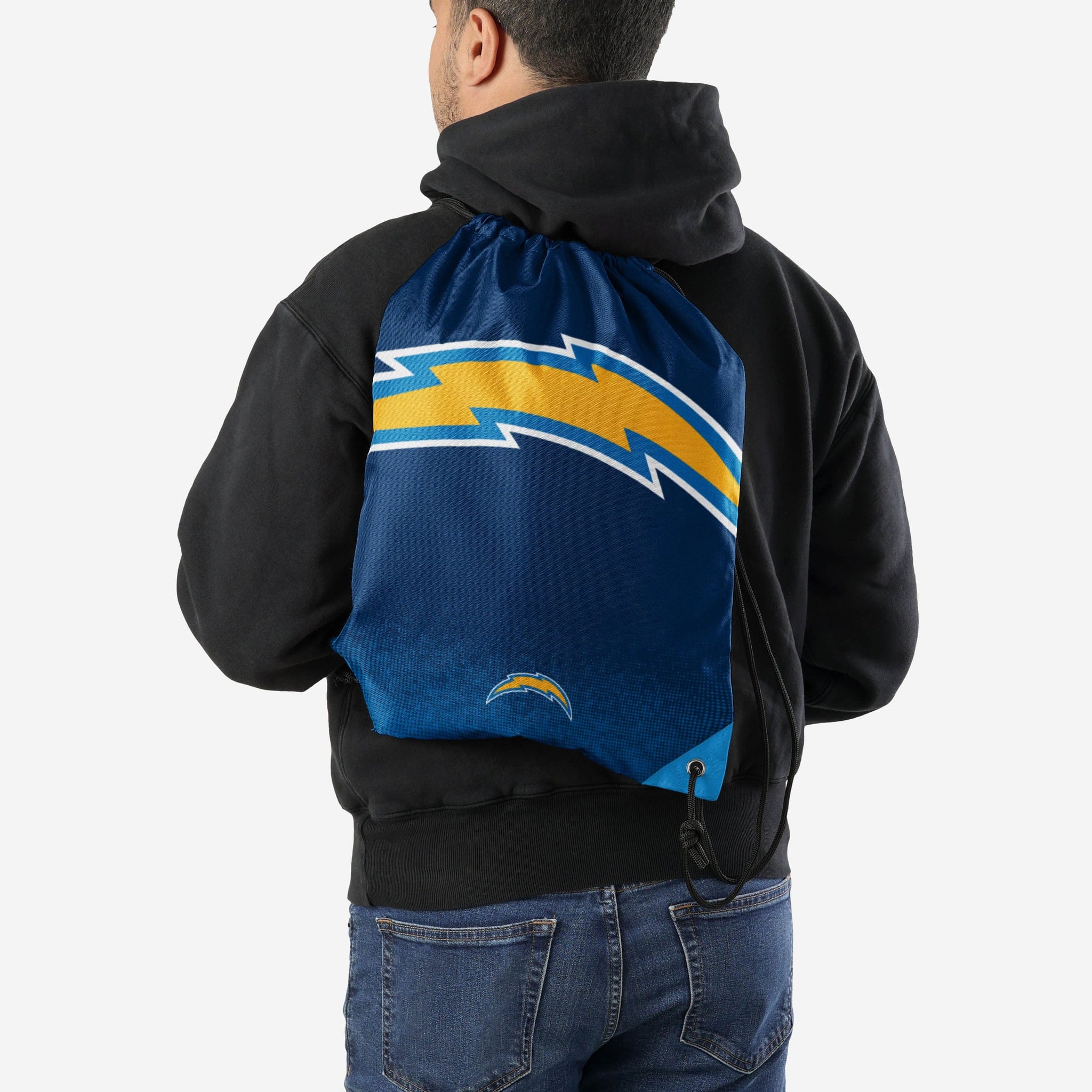 Gym essentials: Water, headphones, deodorant, towel. Oh yeah, and your team spirit. This Los Angeles Chargers Gradient Drawstring Backpack will take care of the team spirit, and can carry all the other stuff. Flex that fandom!