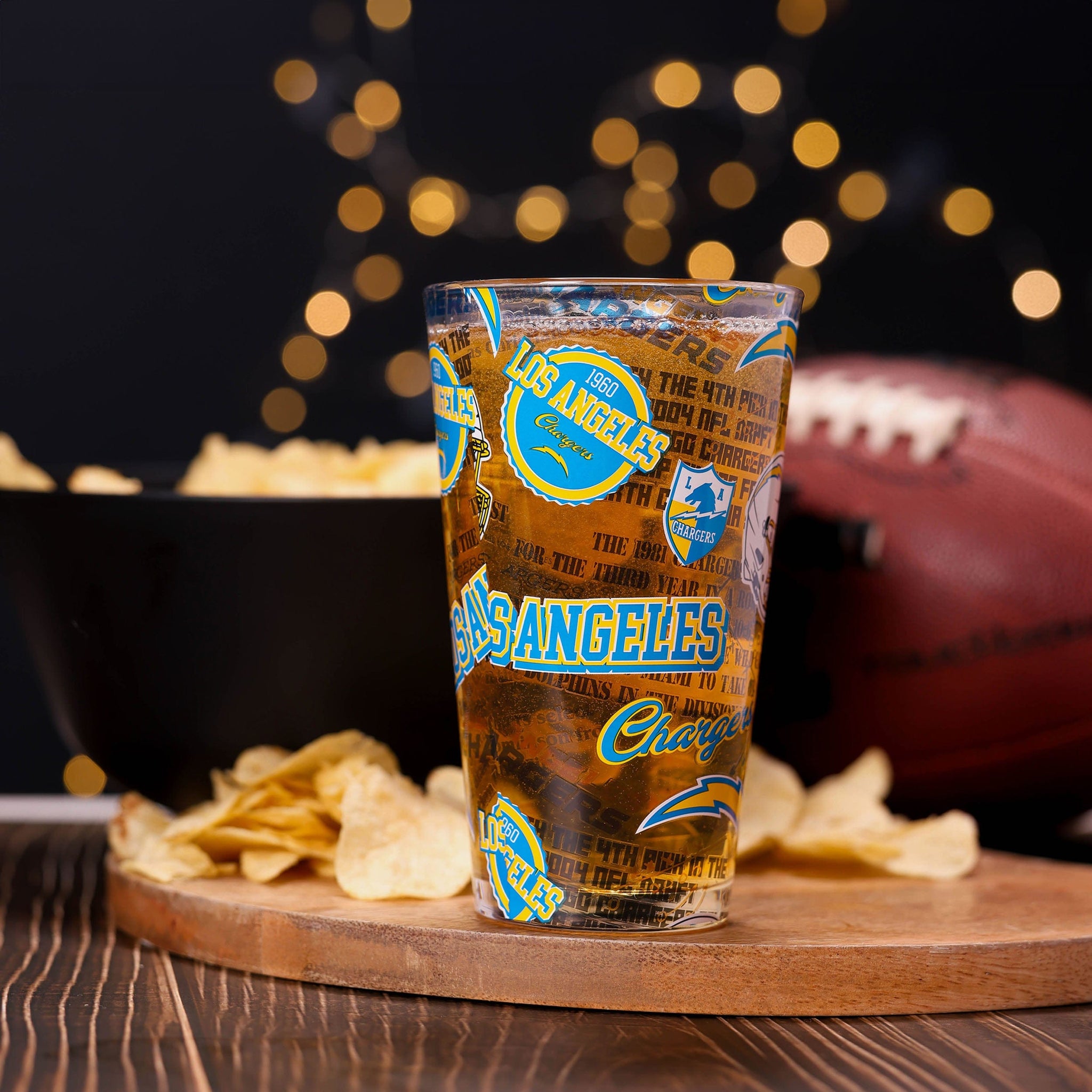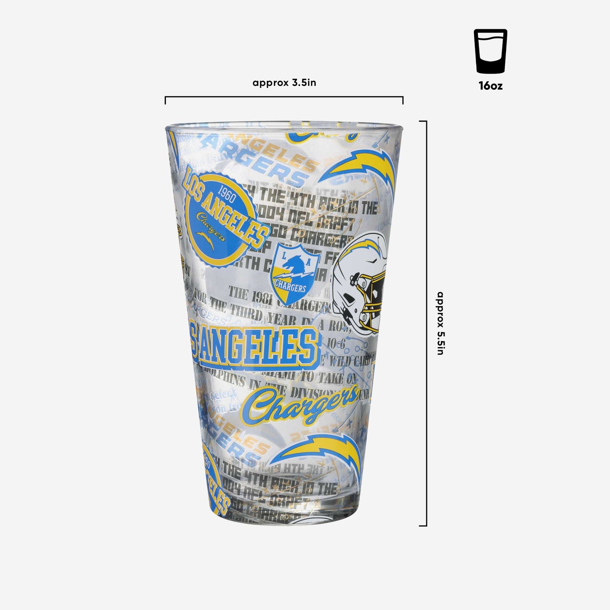 A blast from the past served in one fine pint. Introducing the Los Angeles Chargers Historic Print Pint Glass. Let's make history.