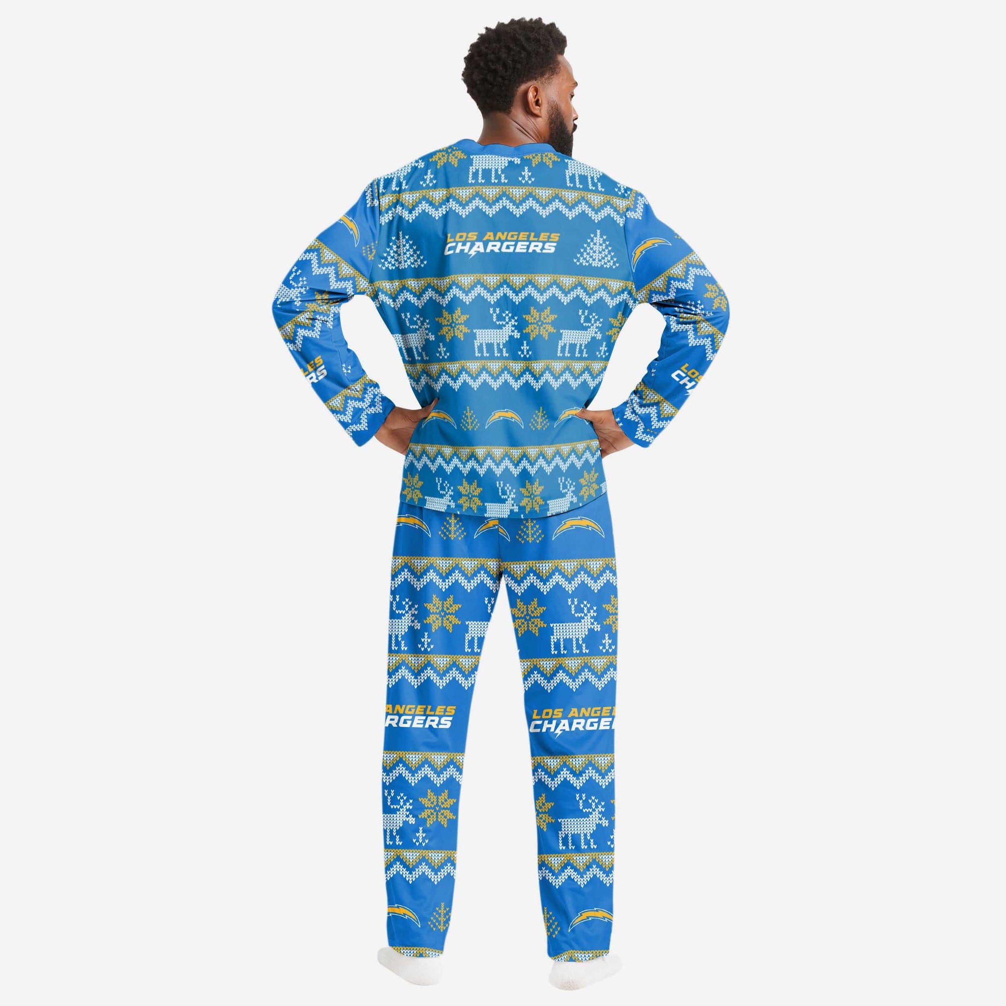 Los Angeles Chargers Mens Ugly Pattern Family Holiday Pajamas FOCO S - FOCO.com