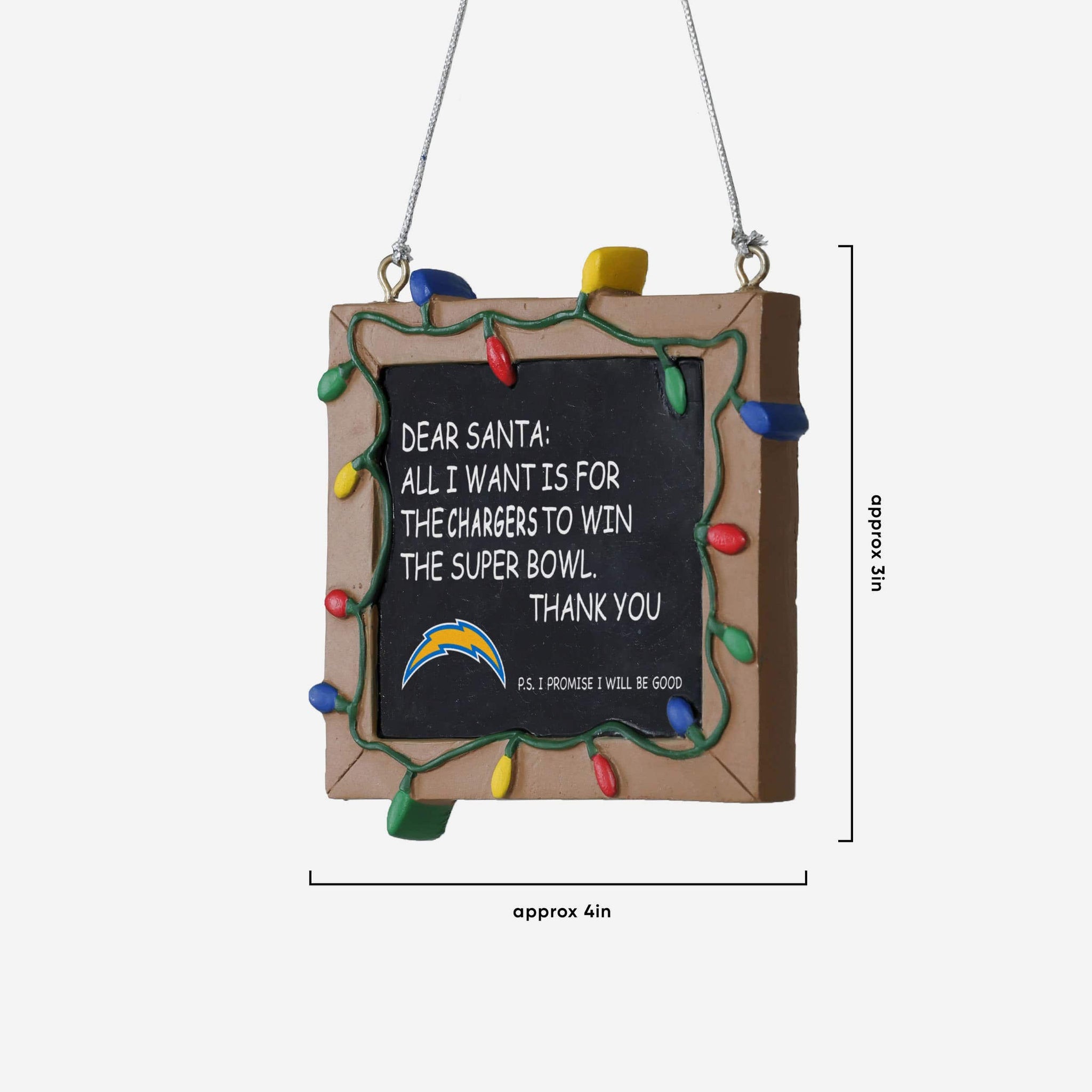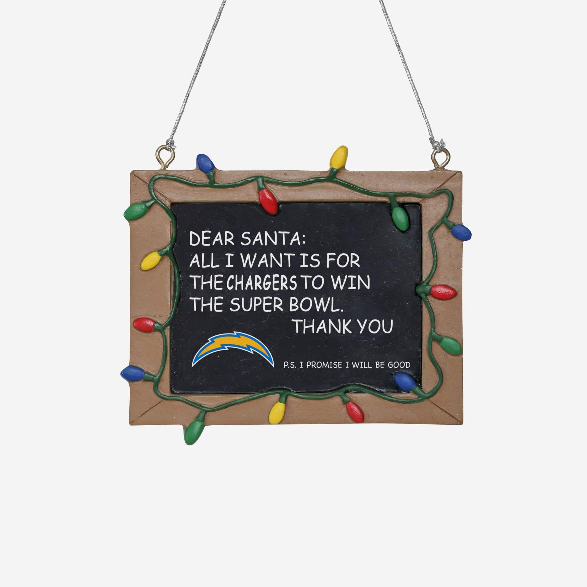 So, you made your list and sent it to jolly ol' Fanta Claus, asking him for a championship. But sometimes letters can get lost in the mail. Just in case, put this Los Angeles Chargers Resin Chalkboard Sign Ornament on your tree to let him know how good you've been this year, and that all you want for the holidays is a trophy.