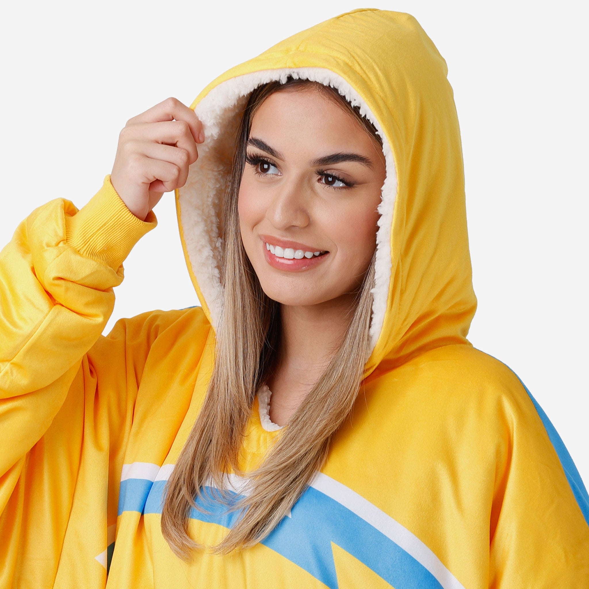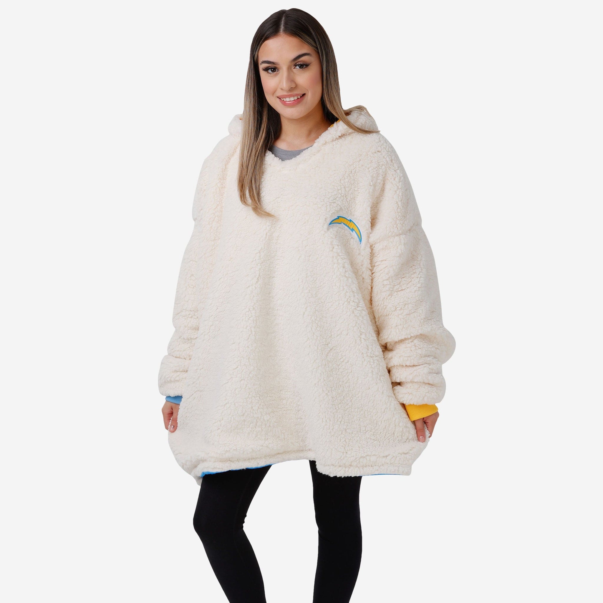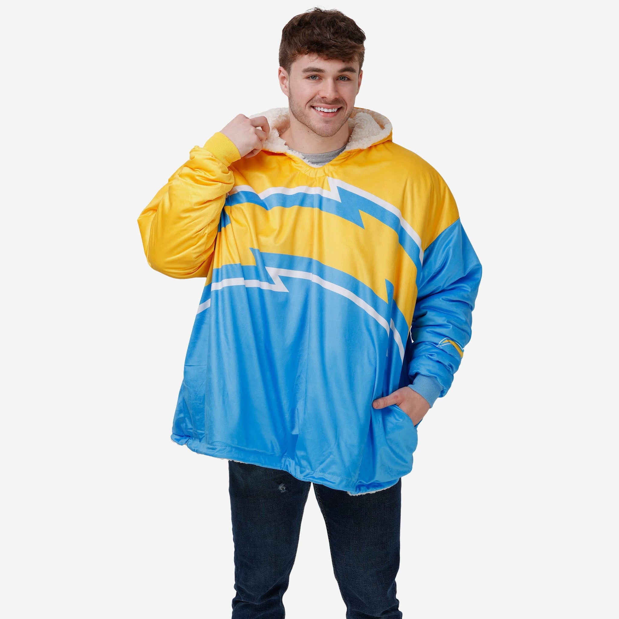Never before has fandom looked so good and felt so relaxing. Lounge like a legend while you cheer your team on to victory by rocking this Los Angeles Chargers Reversible Colorblock Hoodeez.