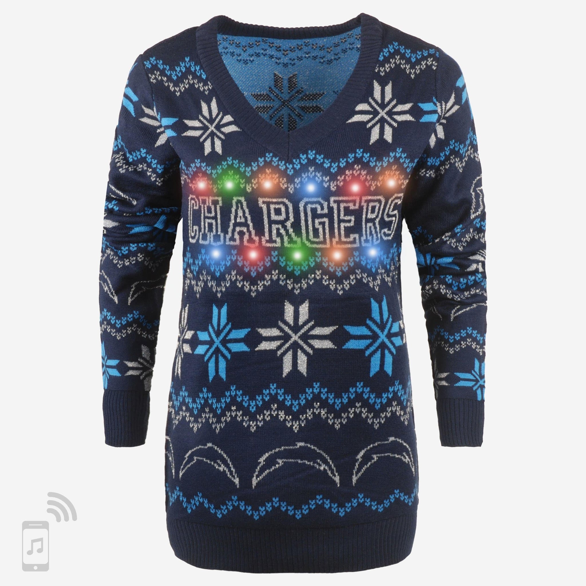 Los Angeles Chargers Womens Light Up V-Neck Bluetooth Sweater