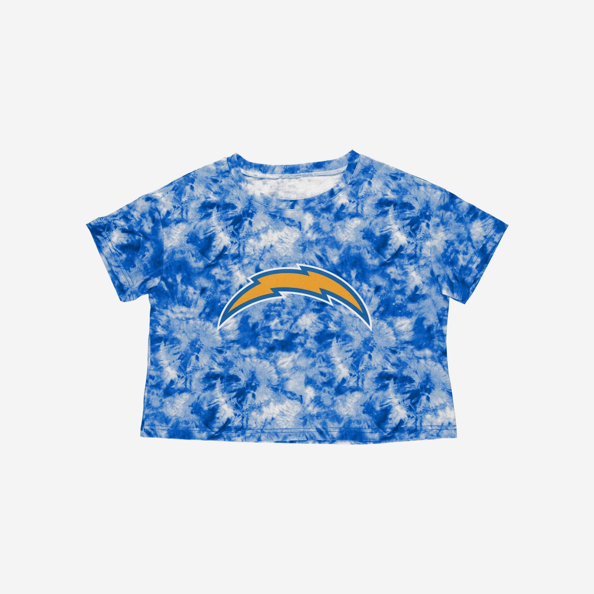 Your fan fashion is about to get, like, totally radical. Stand out in the crowd with the bold team colors of this Los Angeles Chargers Women's Tie-Dye Big Logo Crop Top!