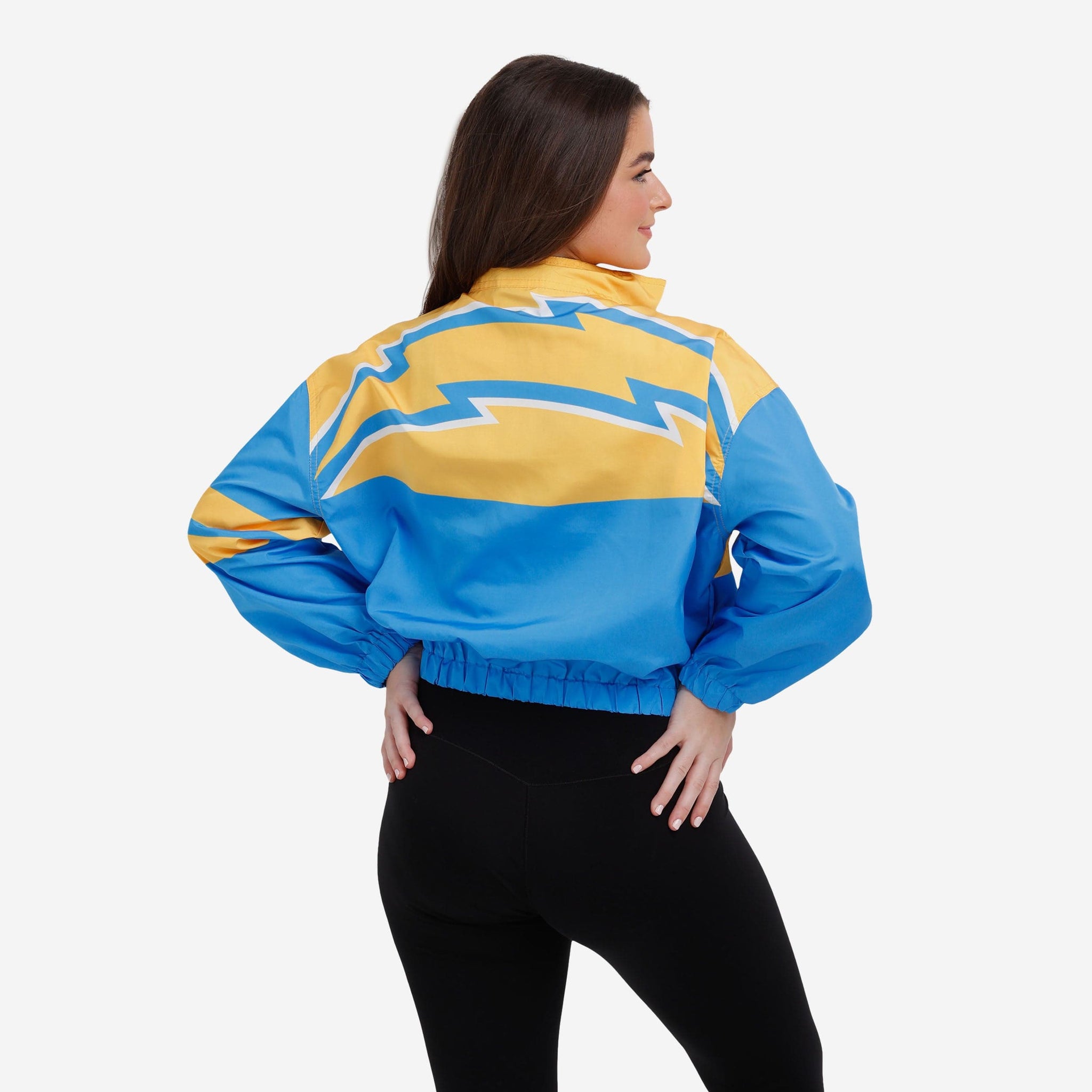 This Los Angeles Chargers Women's Winning Play Windbreaker has a bold team logo on the back, so you can show off your team spirit to everyone you leave in the dust while you run the track.