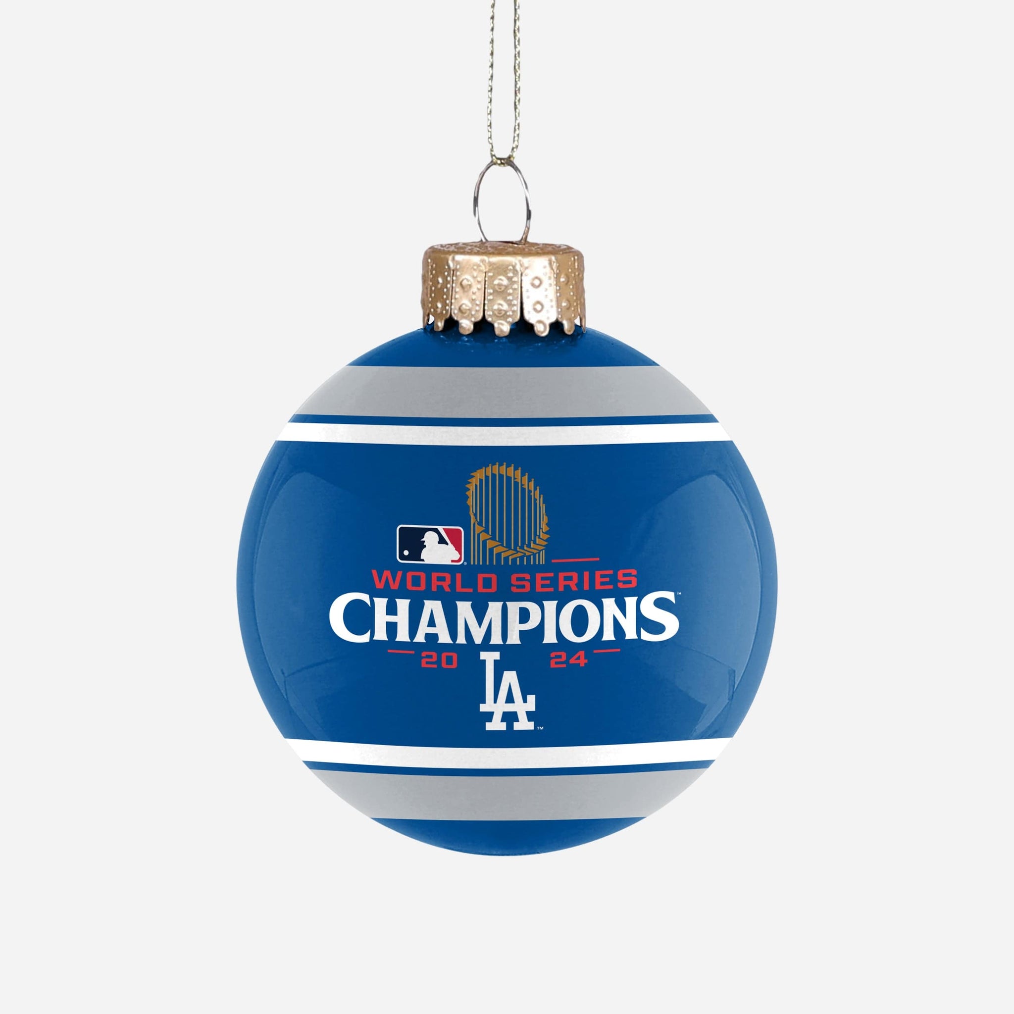 After an incredible championship run, keep the excitement going with a championship Christmas tree in your home. For reference, a "championship Christmas tree" is any tree that's got this Los Angeles Dodgers 2024 World Series Champions Glass Ball Ornament on it.