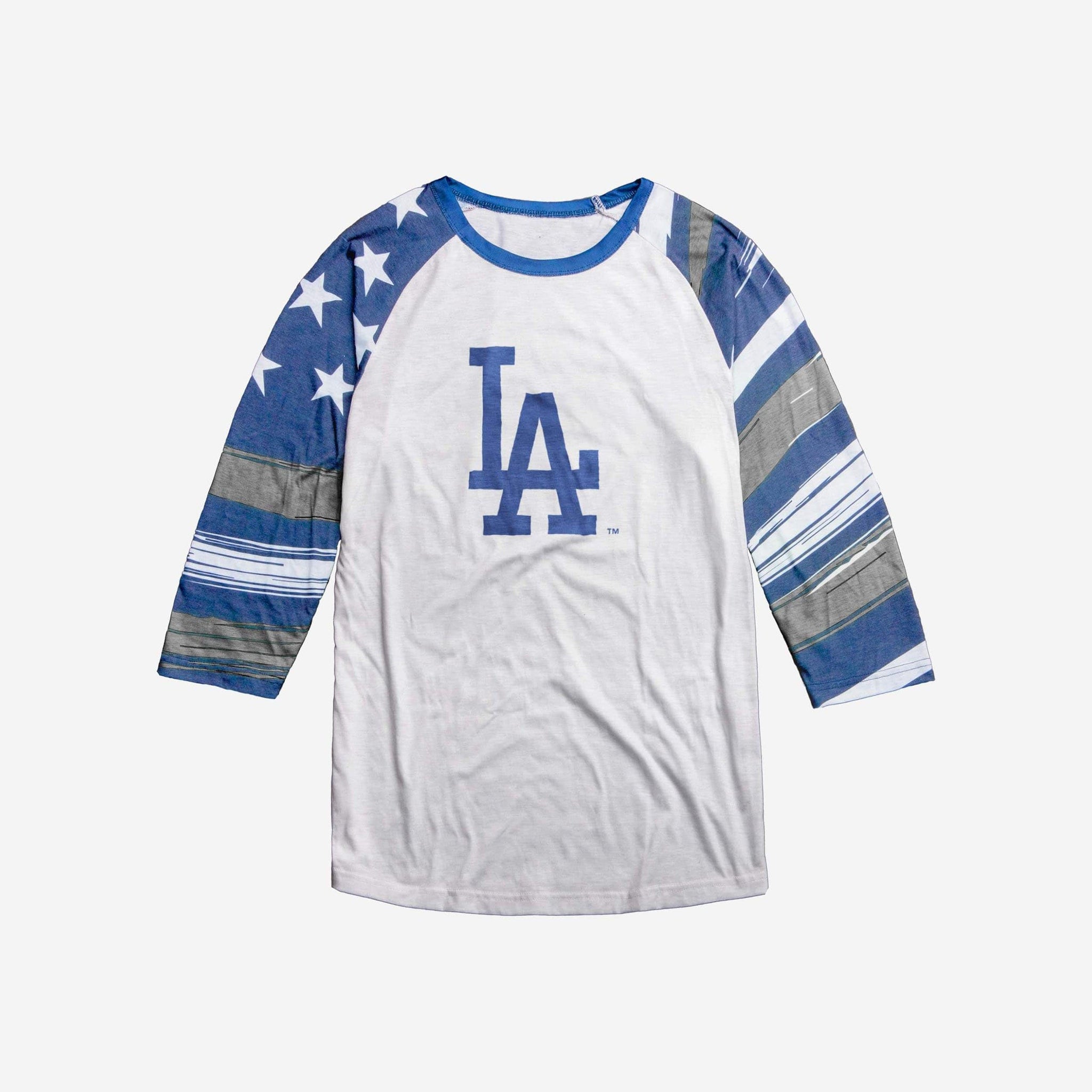 You're not just any American. You're an Ameri-fan. Let freedom ring and show everyone what a true fan looks like by rocking this Los Angeles Dodgers Americana Raglan T-Shirt. Get ready to F-A-N in the U-S-A.