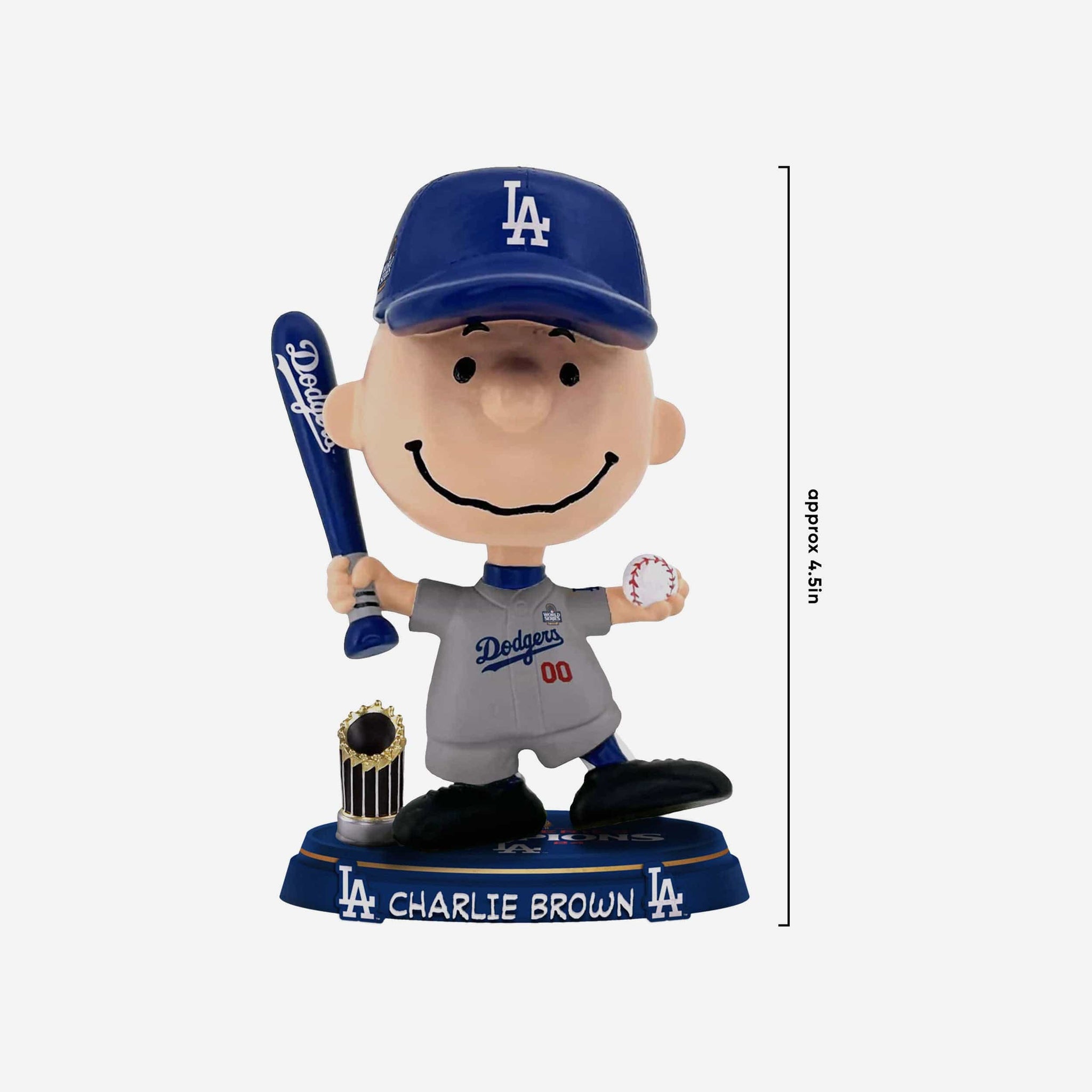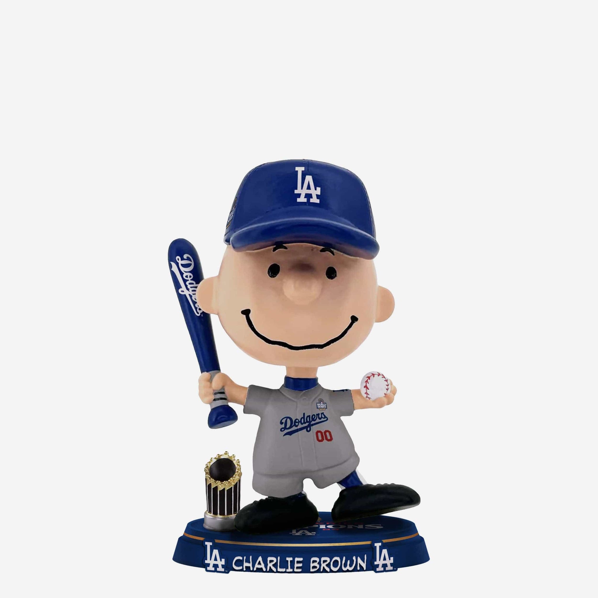 You're up to bat, Charlie Brown! Root, root, rooting for your home team is a whole lot more fun when you’ve got this Los Angeles Dodgers Charlie Brown Peanuts 2024 World Series Champions Mini Bighead Bobblehead in the lineup.