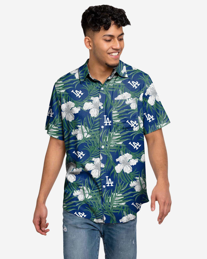 Whether you're sipping a cold, delicious beverage on the beach, or just lounging on the couch watching the game on TV, this Los Angeles Dodgers Hibiscus Button Up Shirt is the perfect way to show off your fan fashion sense at literally any occasion.