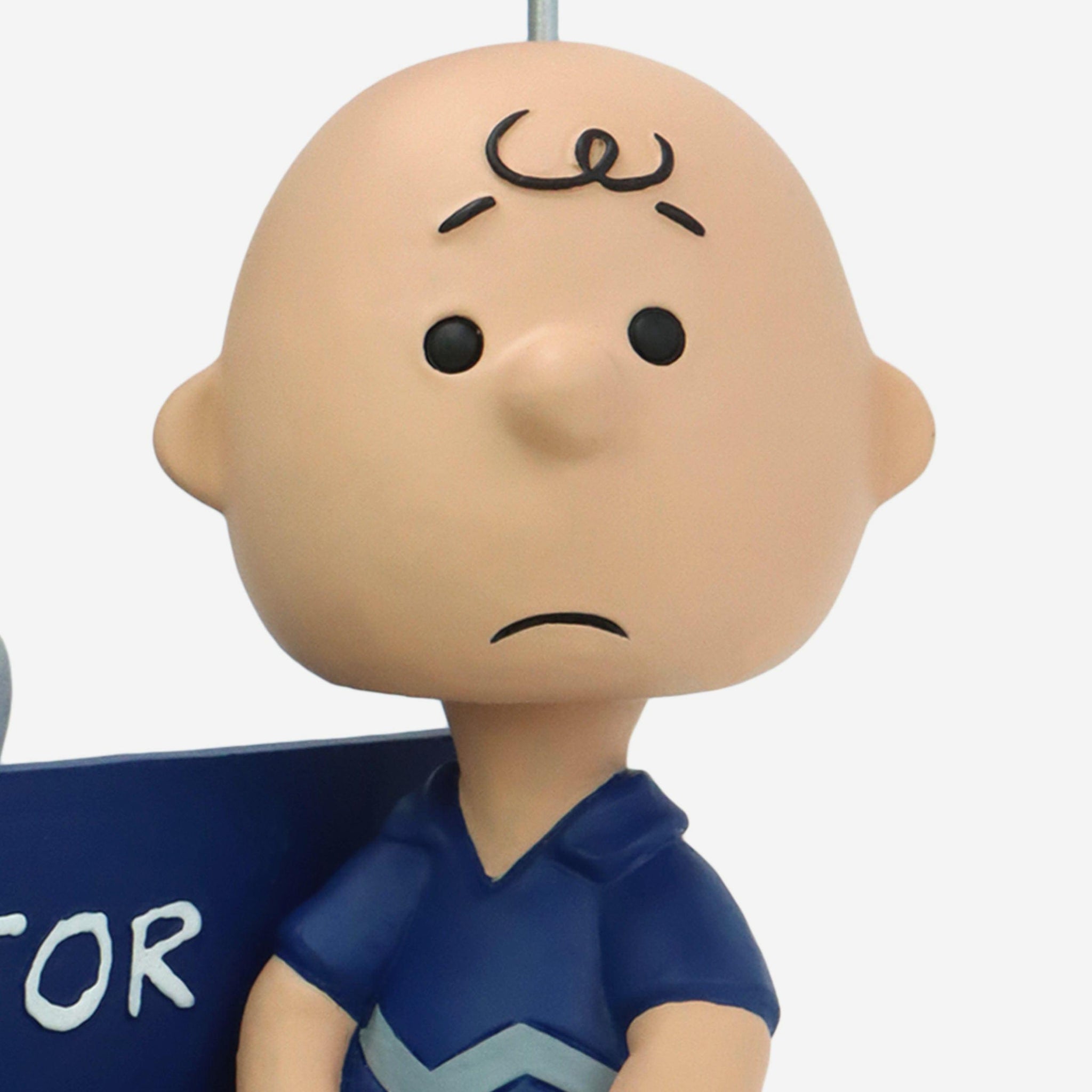 • Portrays Lucy Van Pelt sitting behind a team-colored wooden stand, and Charlie Brown sitting in front of the stand, ready to give your collection some great advice