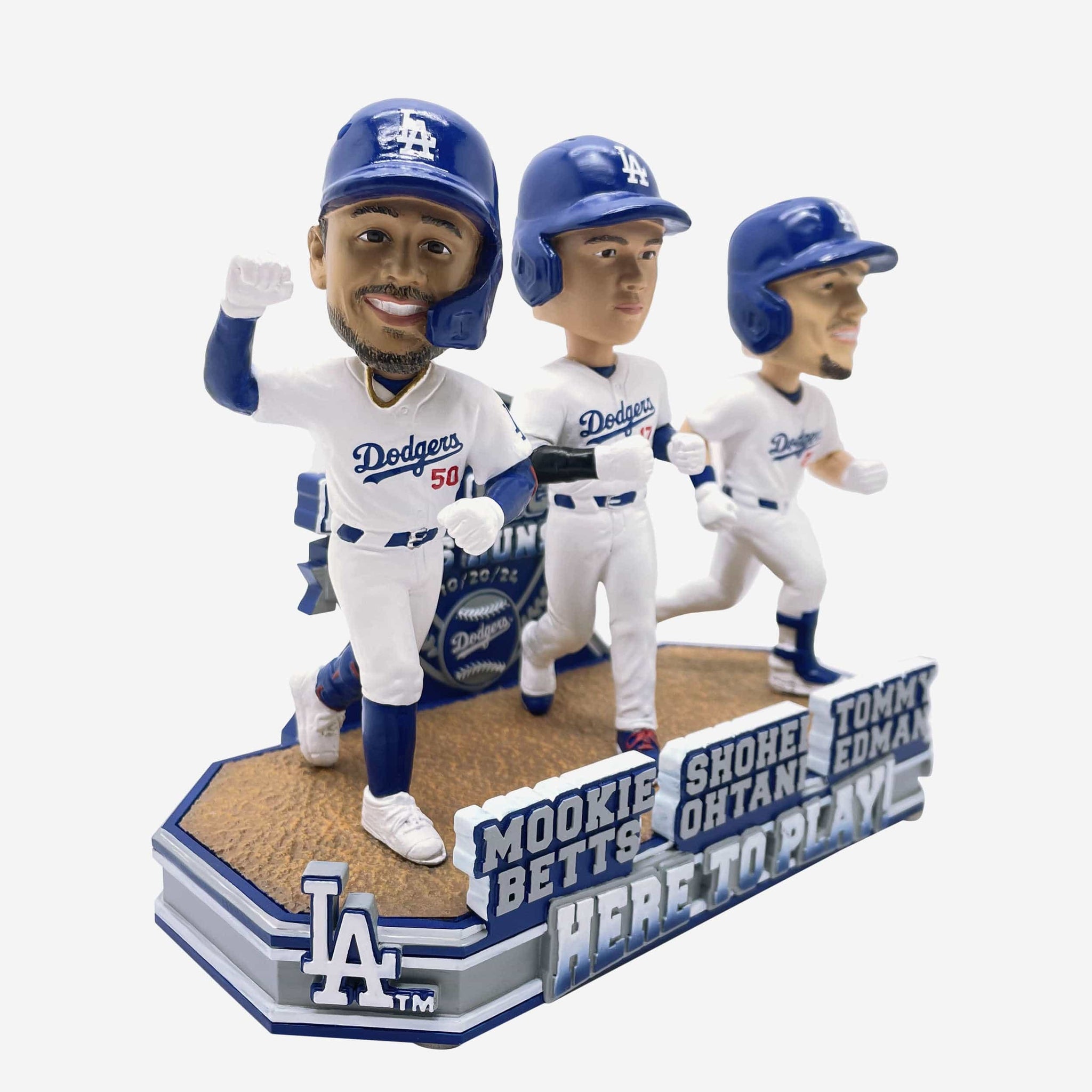 - Portrays Shohei Ohtani, Mookie Betts, and Tommy Edman wearing their white gameday uniforms in action poses for a triple dose of historical NLCS greatness