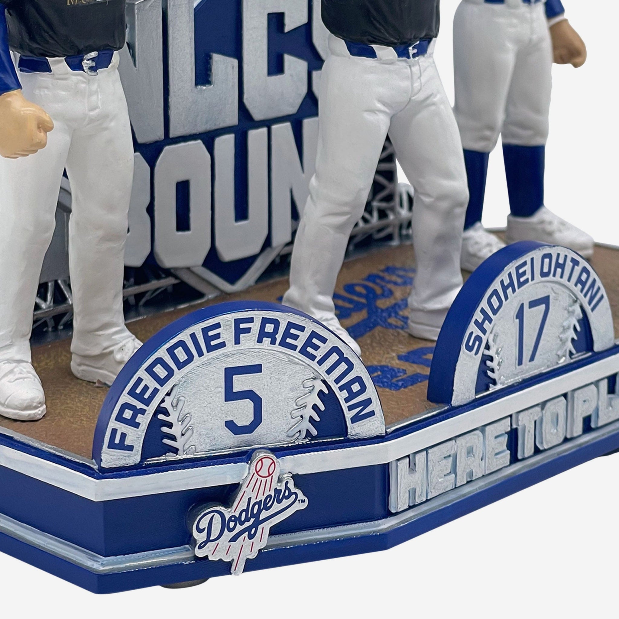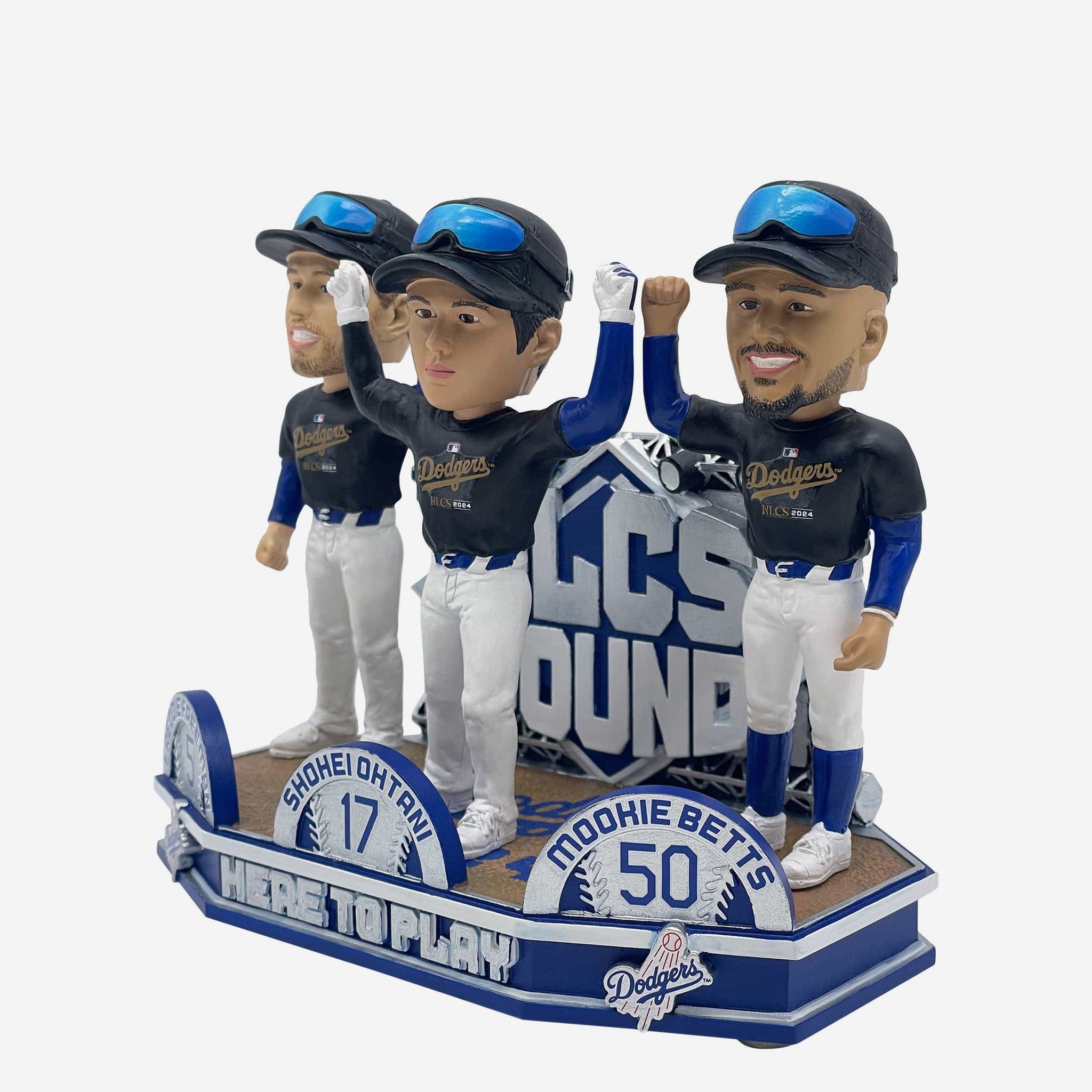 The Dodgers are moving on! Secure your spot in the NLCS with the Los Angeles Dodgers NLCS Bound Mini Bobblehead Scene, featuring Freddie Freeman, Shohei Ohtani, and Mookie Betts.